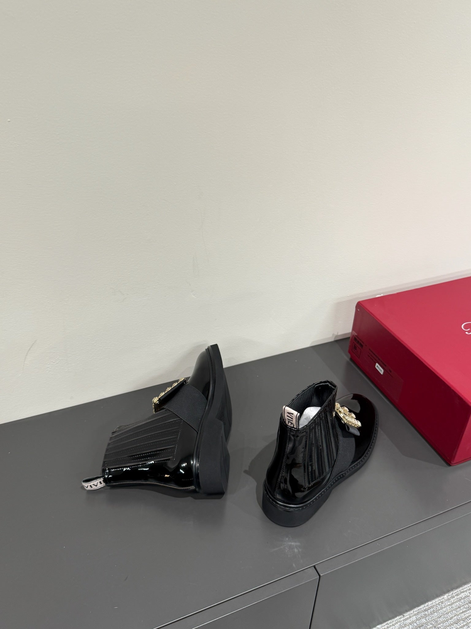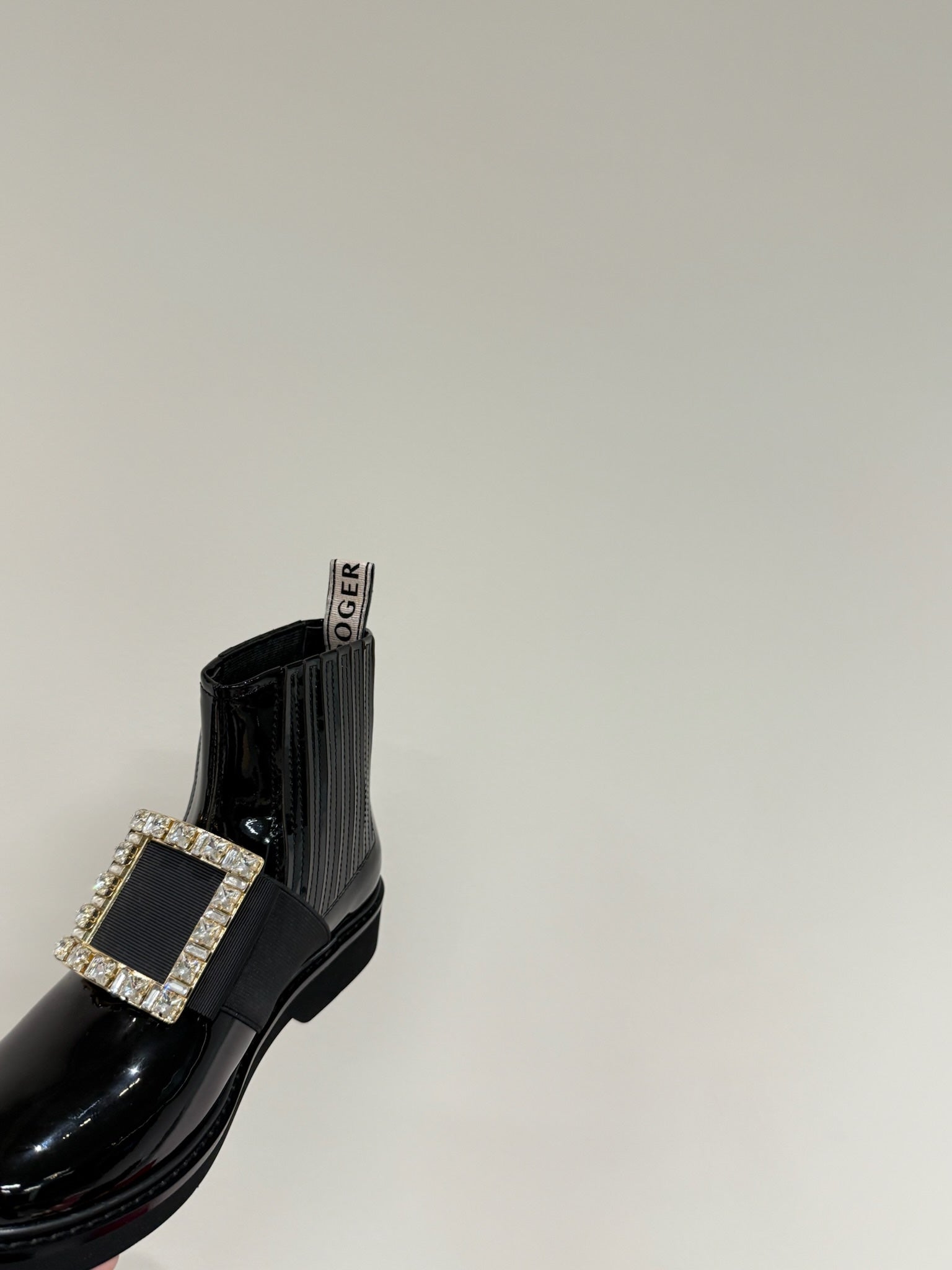VIV' RANGERS CHELSEA BOOTIES IN GLOSSY BLACK CALFSKIN CRYSTAL BUCKLE