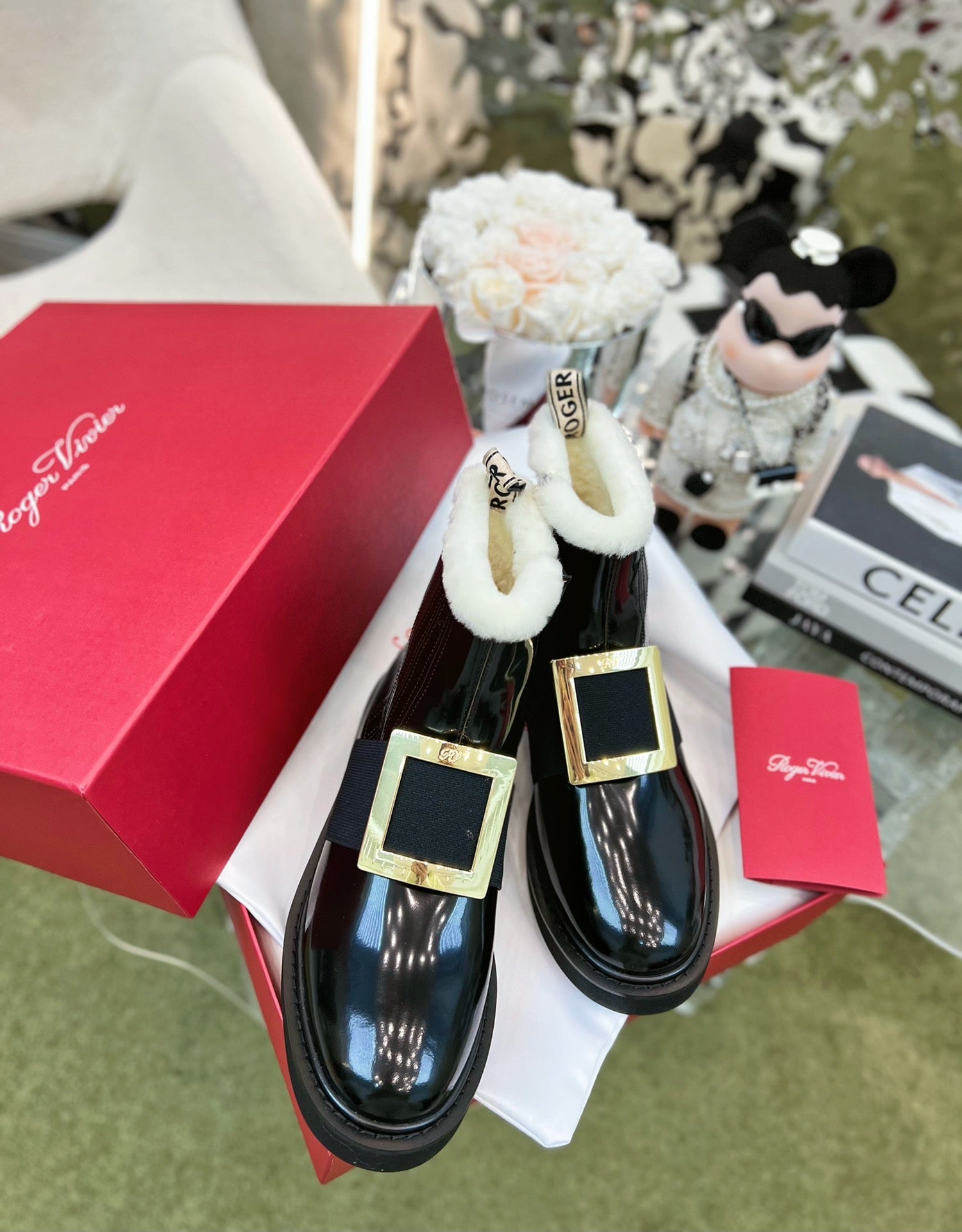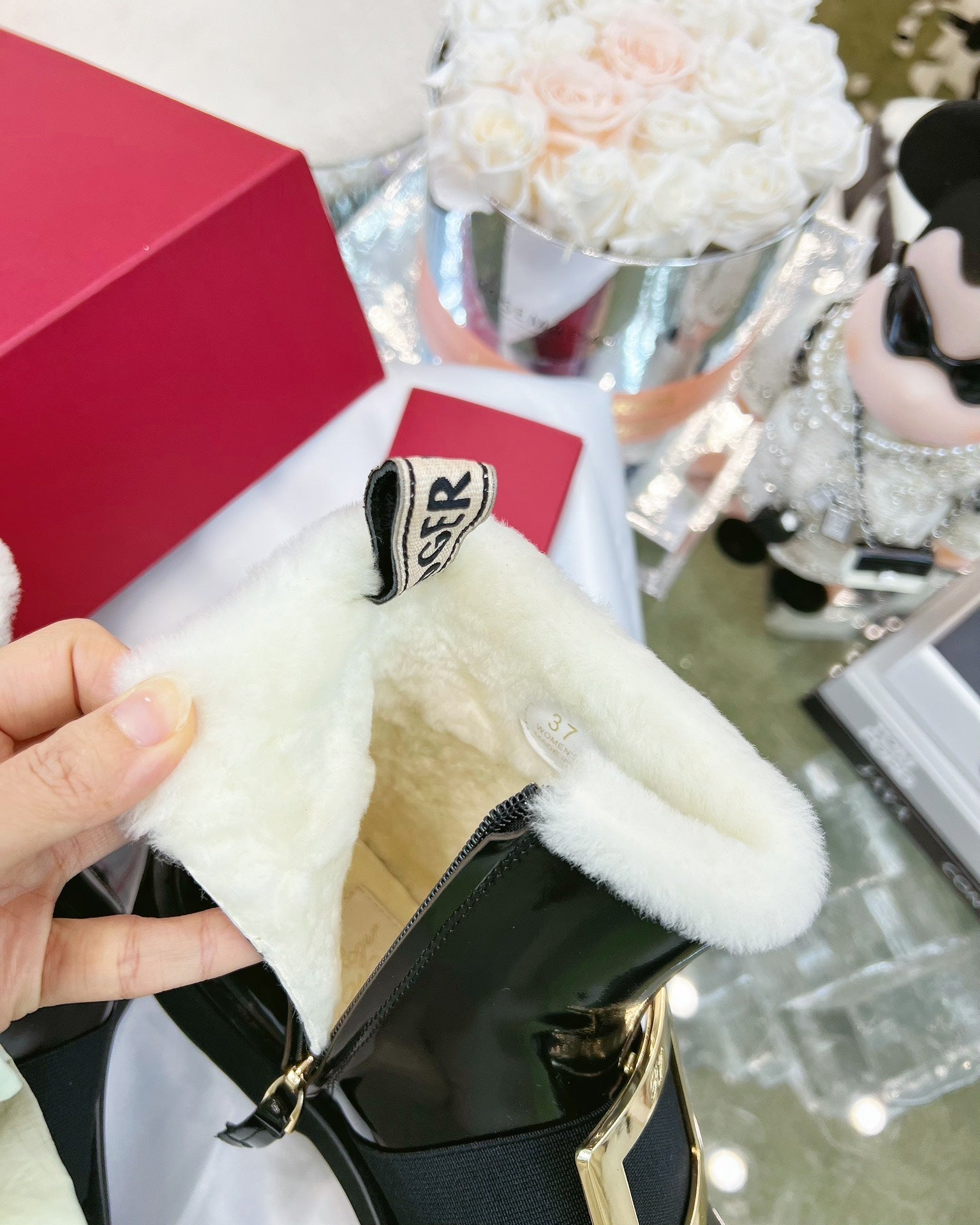 VIV' RANGERS CHELSEA BOOTIES IN PATENT BLACK CALFSKIN FLEECE LINING GOLD BUCKLE
