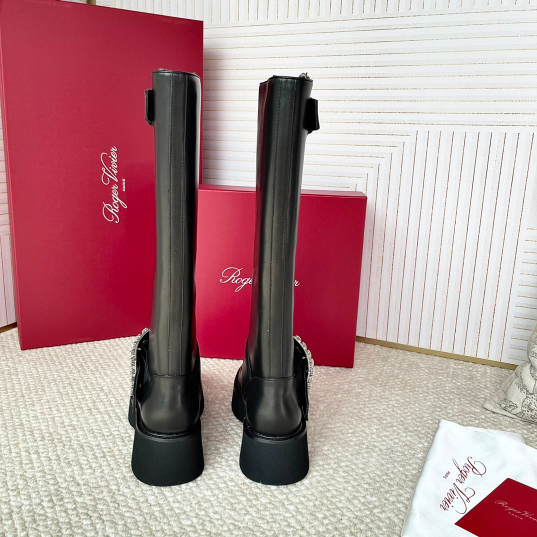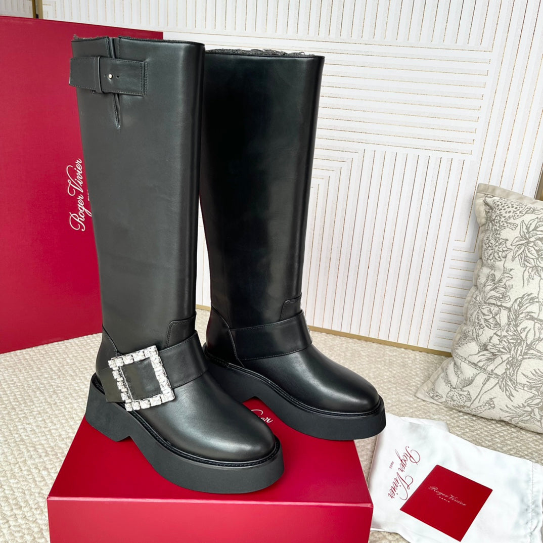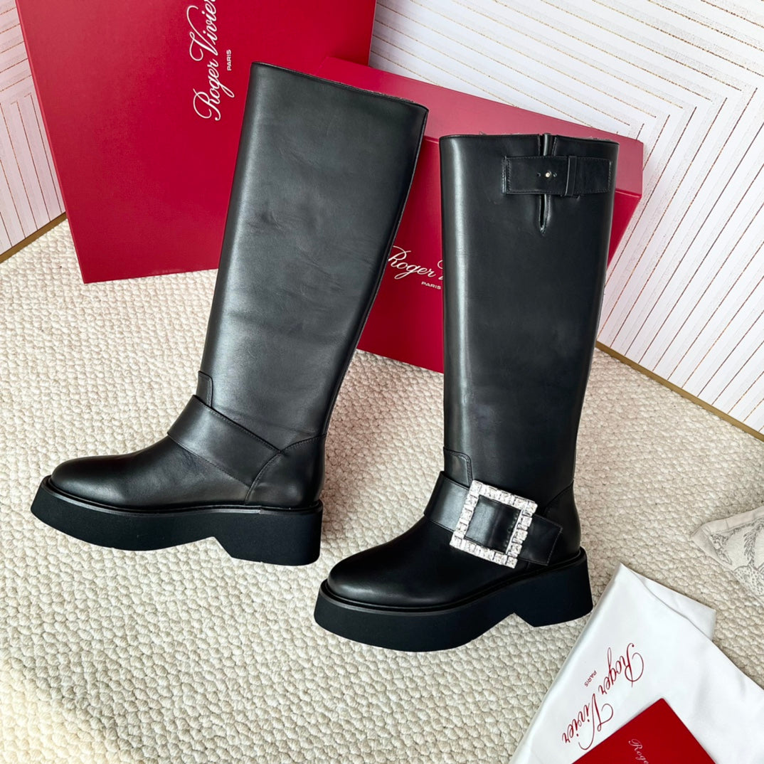 VIV' RANGERS HIGH BIKER IN BLACK CALFSKIN CRYSTAL BUCKLE