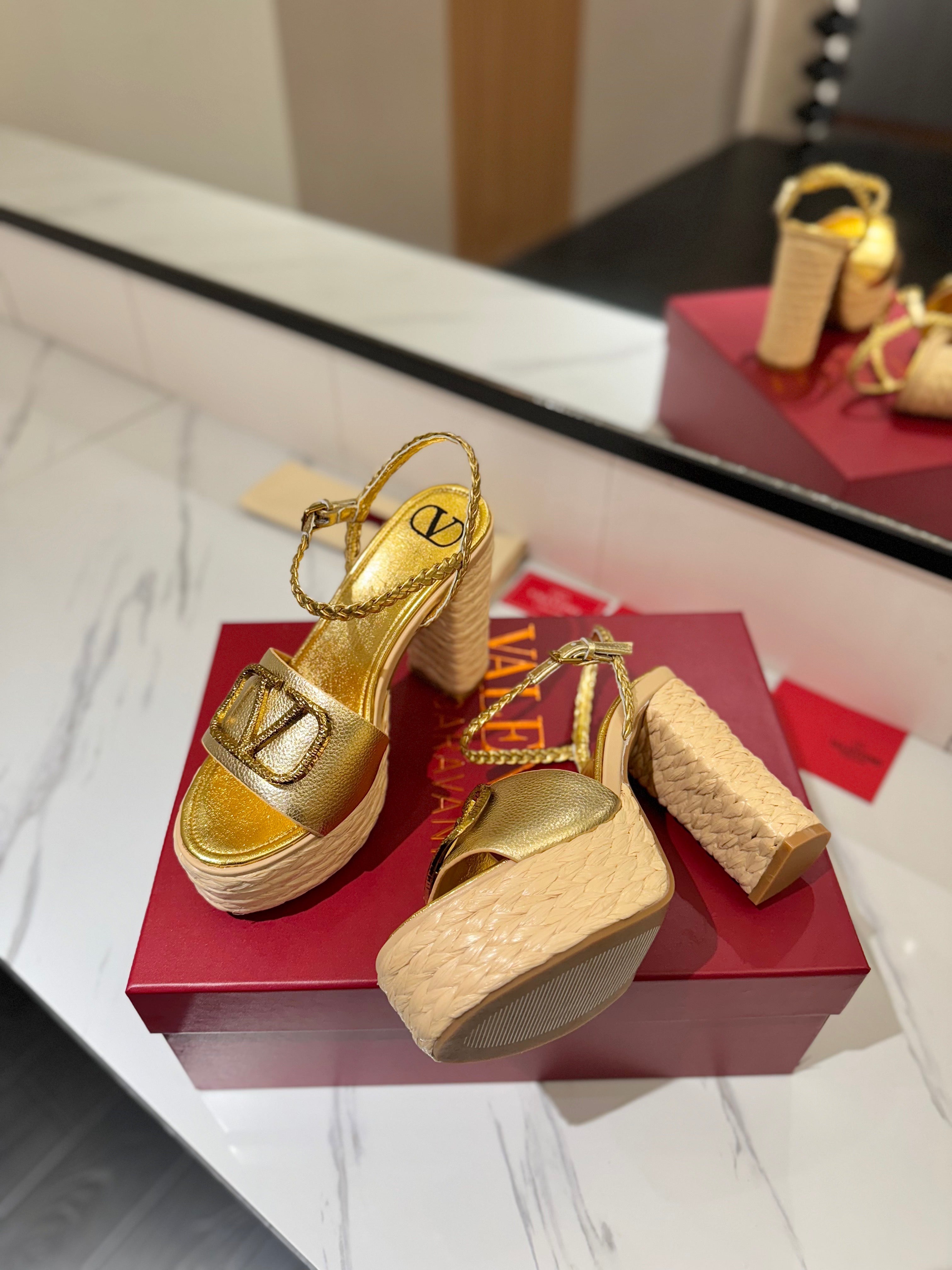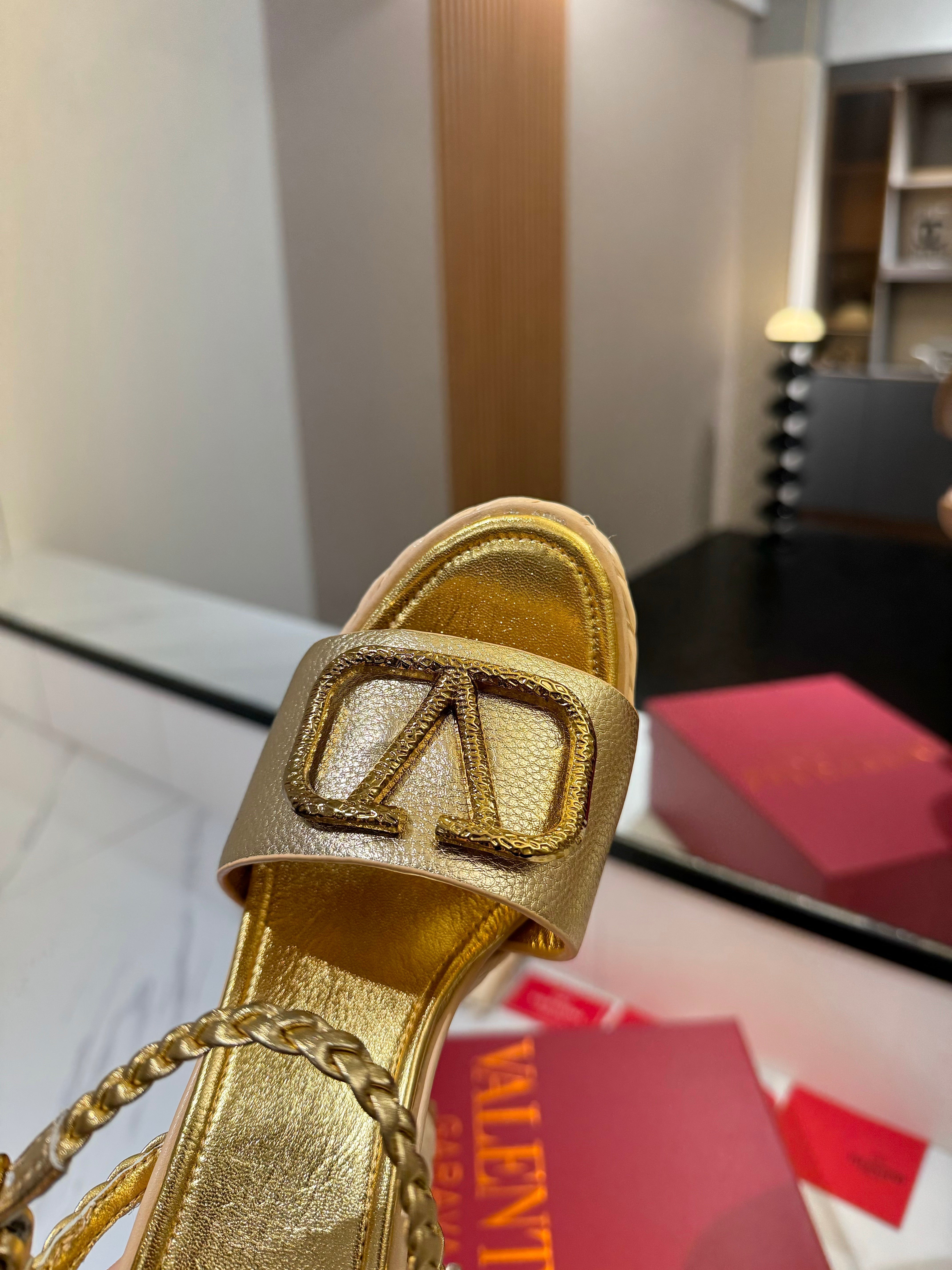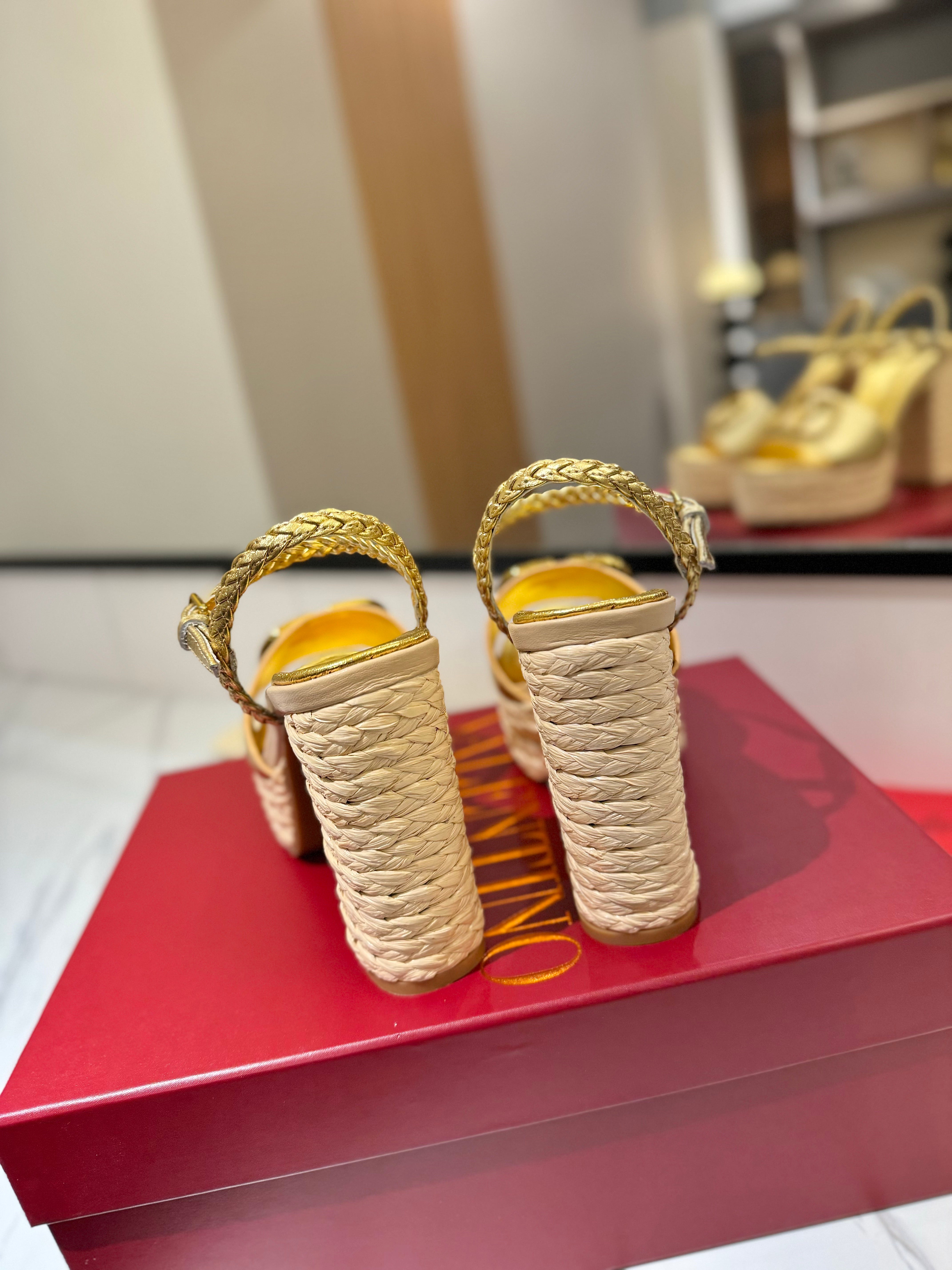 VLTN ESPADRILLE WEDGE SANDALS 25S 115 MM IN GOLD LAMBSKIN WITH GOLD HARDWARE