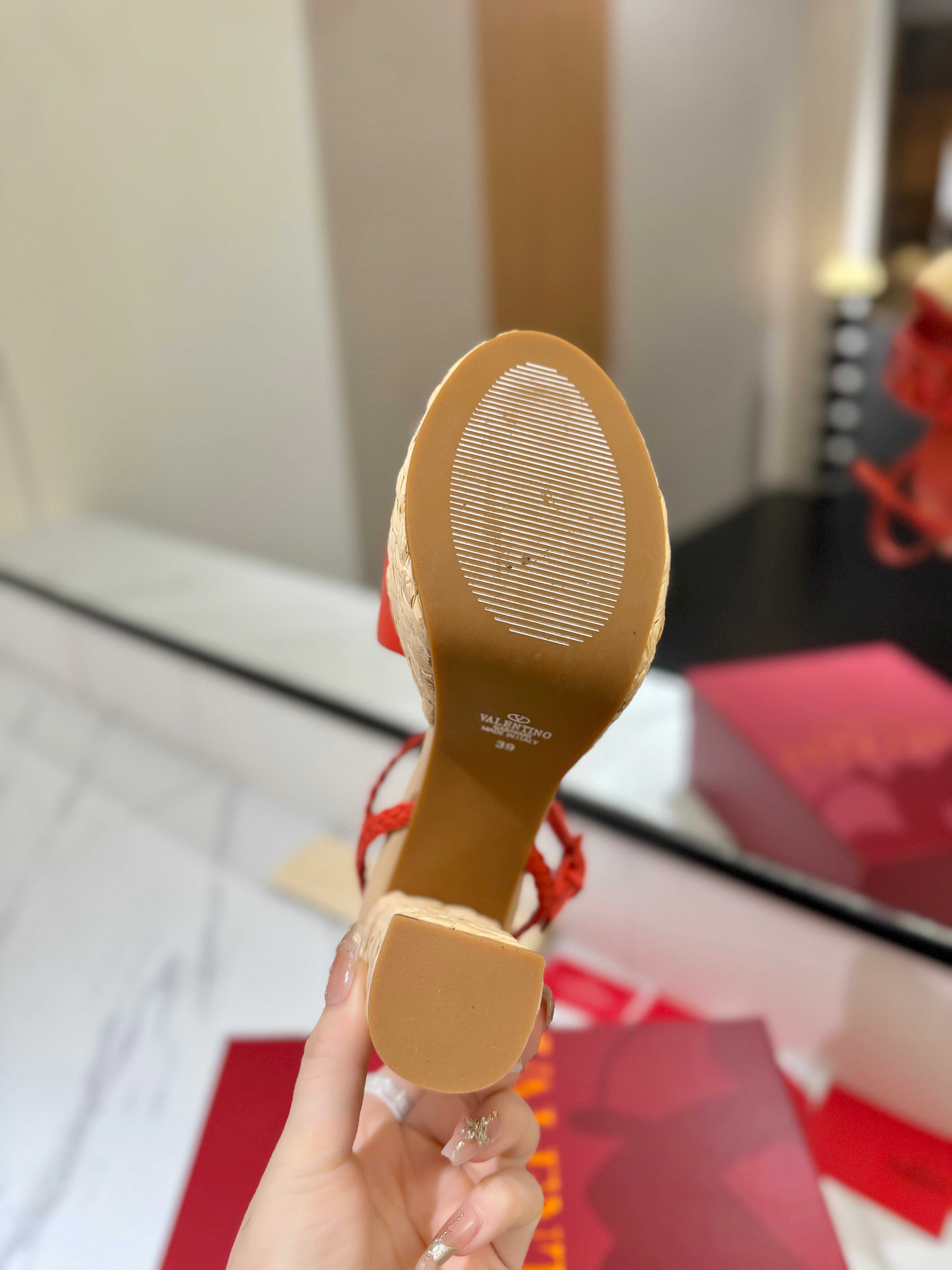 VLTN ESPADRILLE WEDGE SANDALS 25S 115 MM IN ORANGE LAMBSKIN