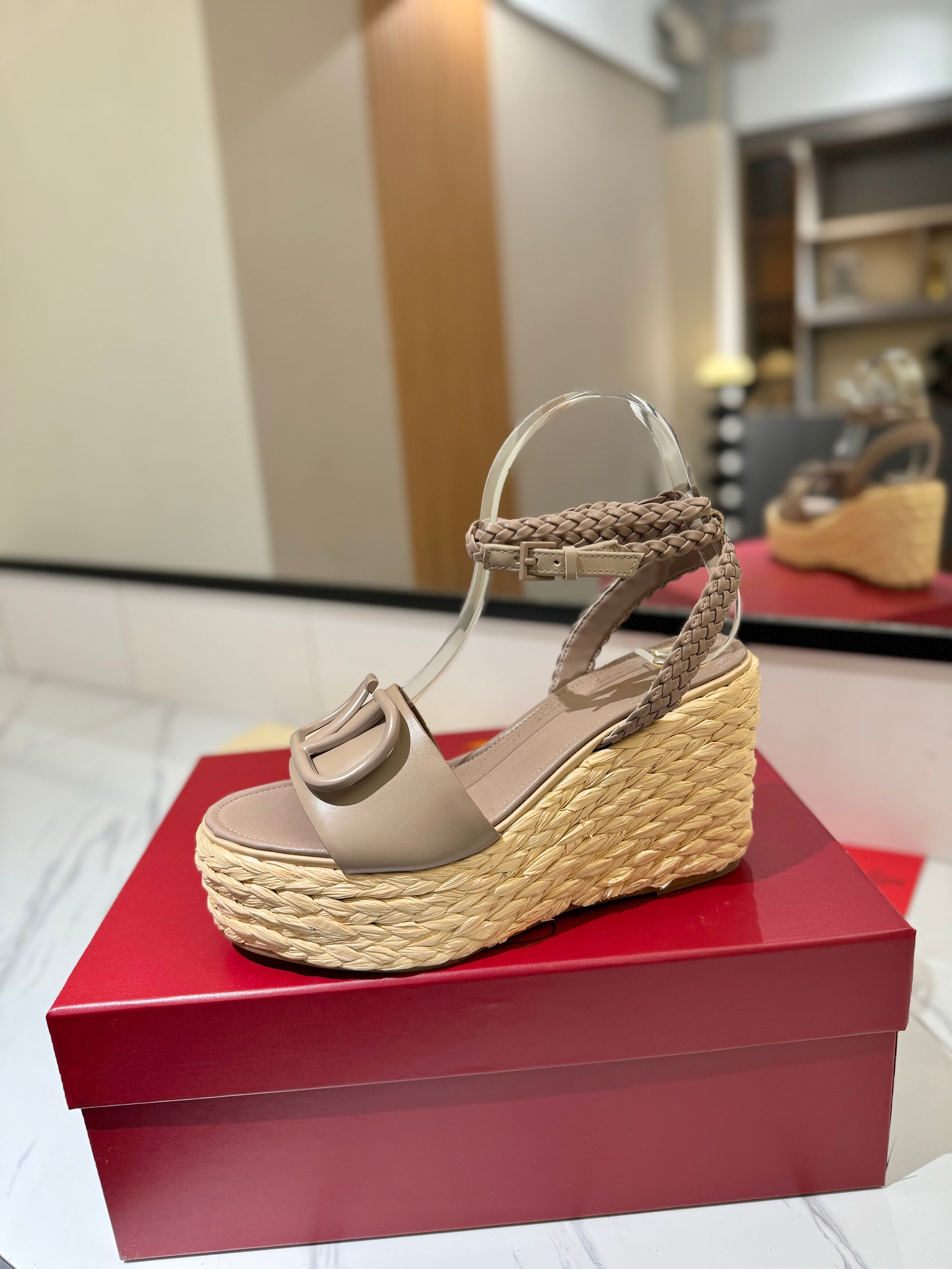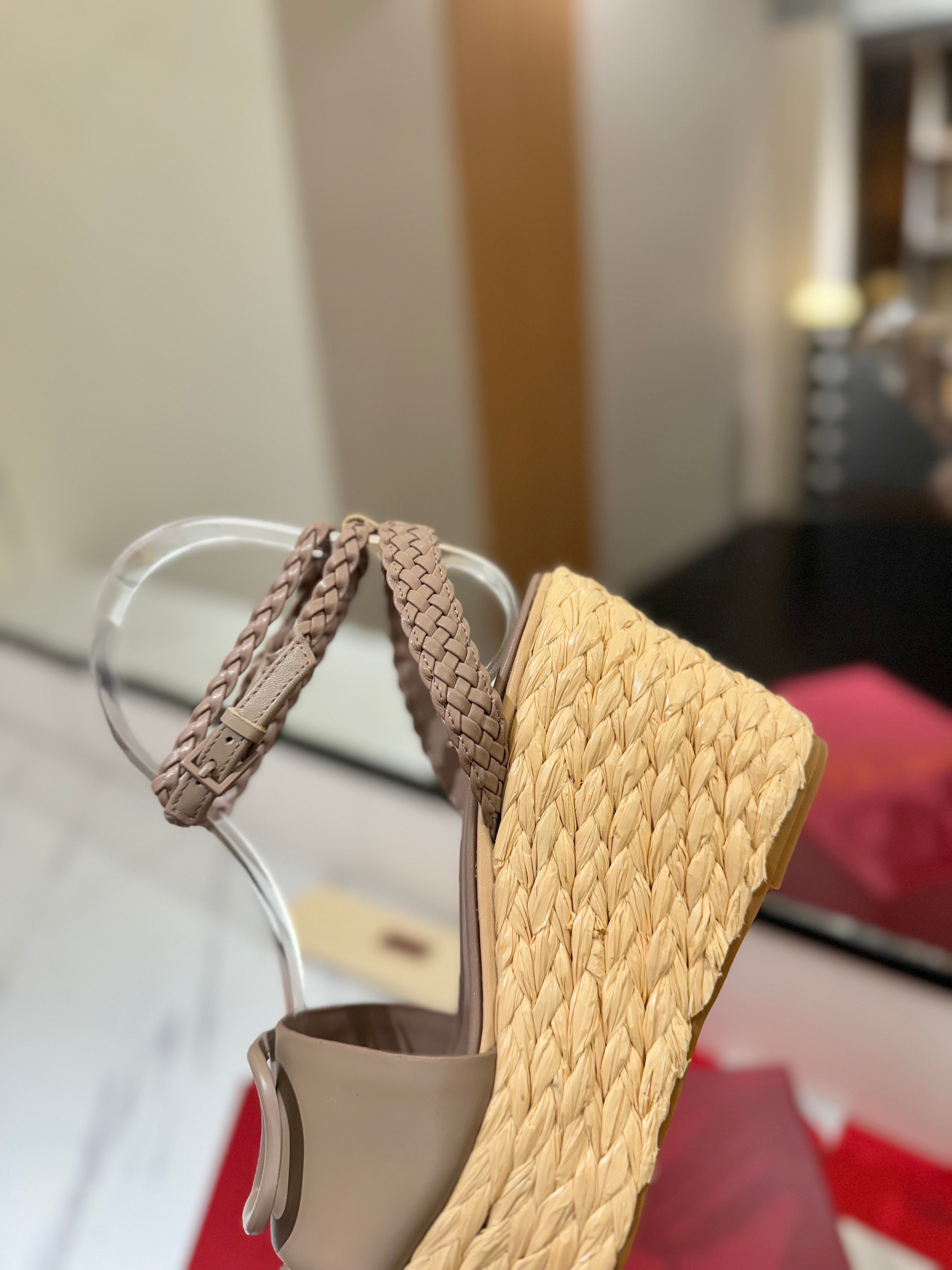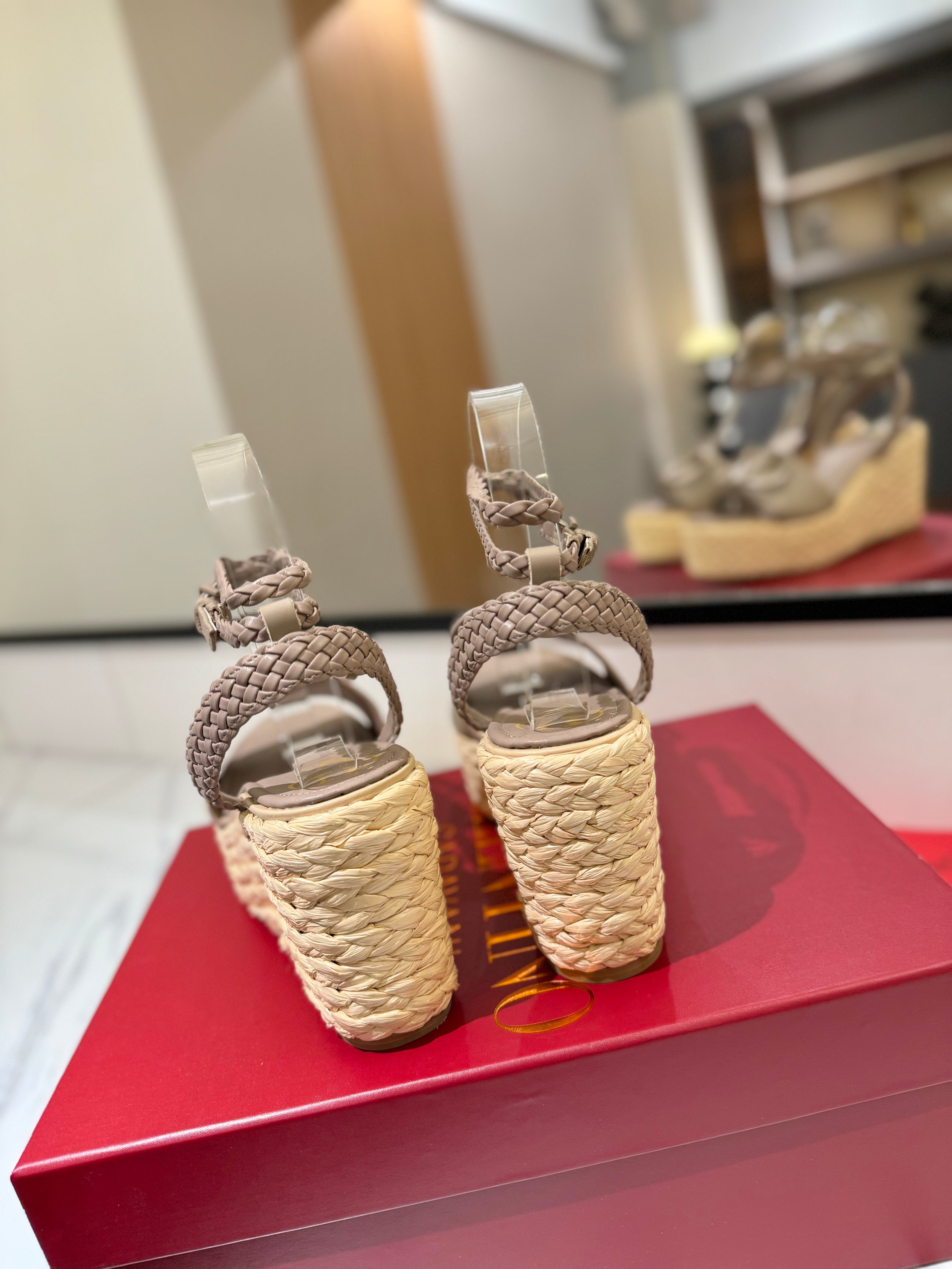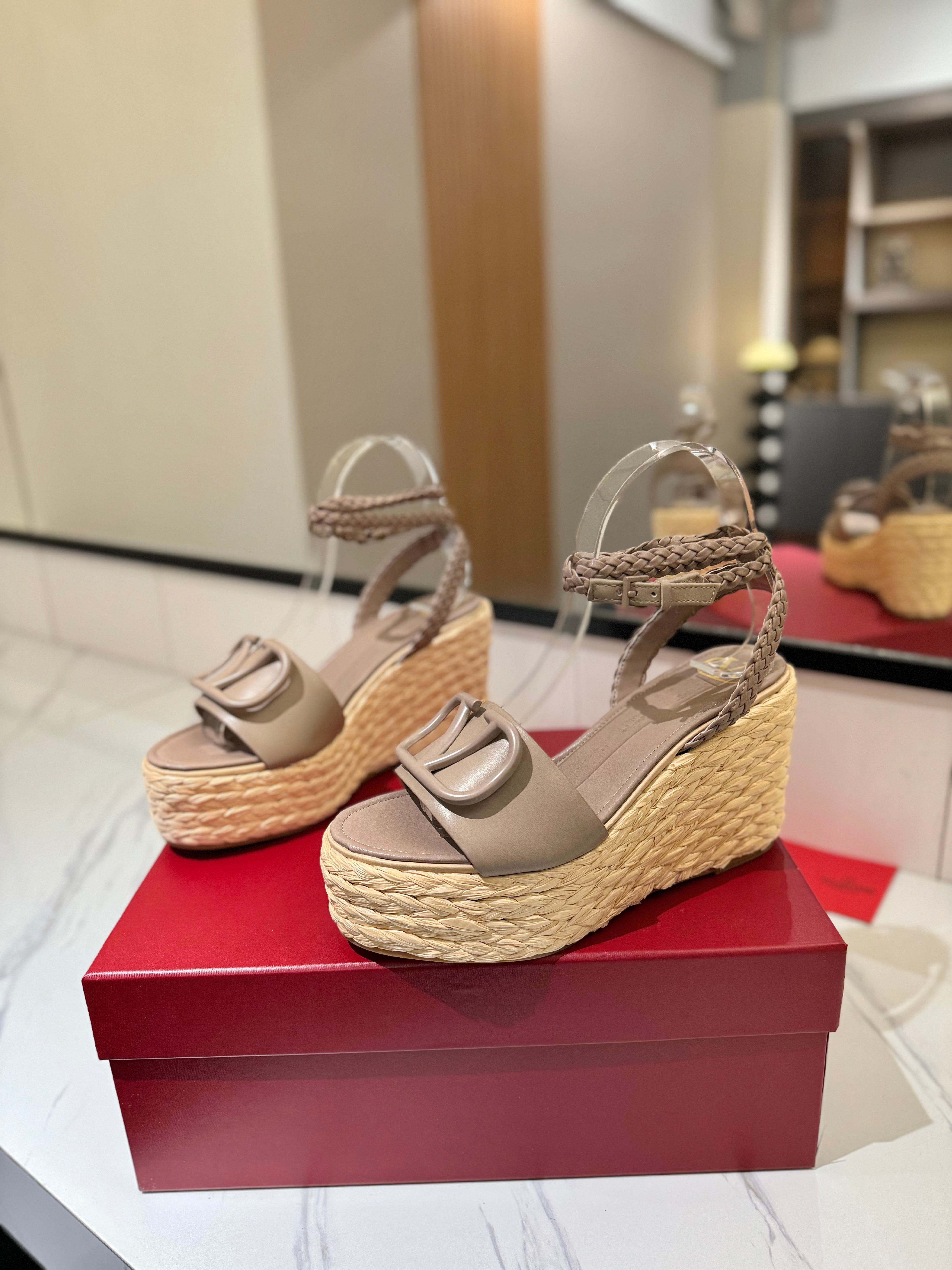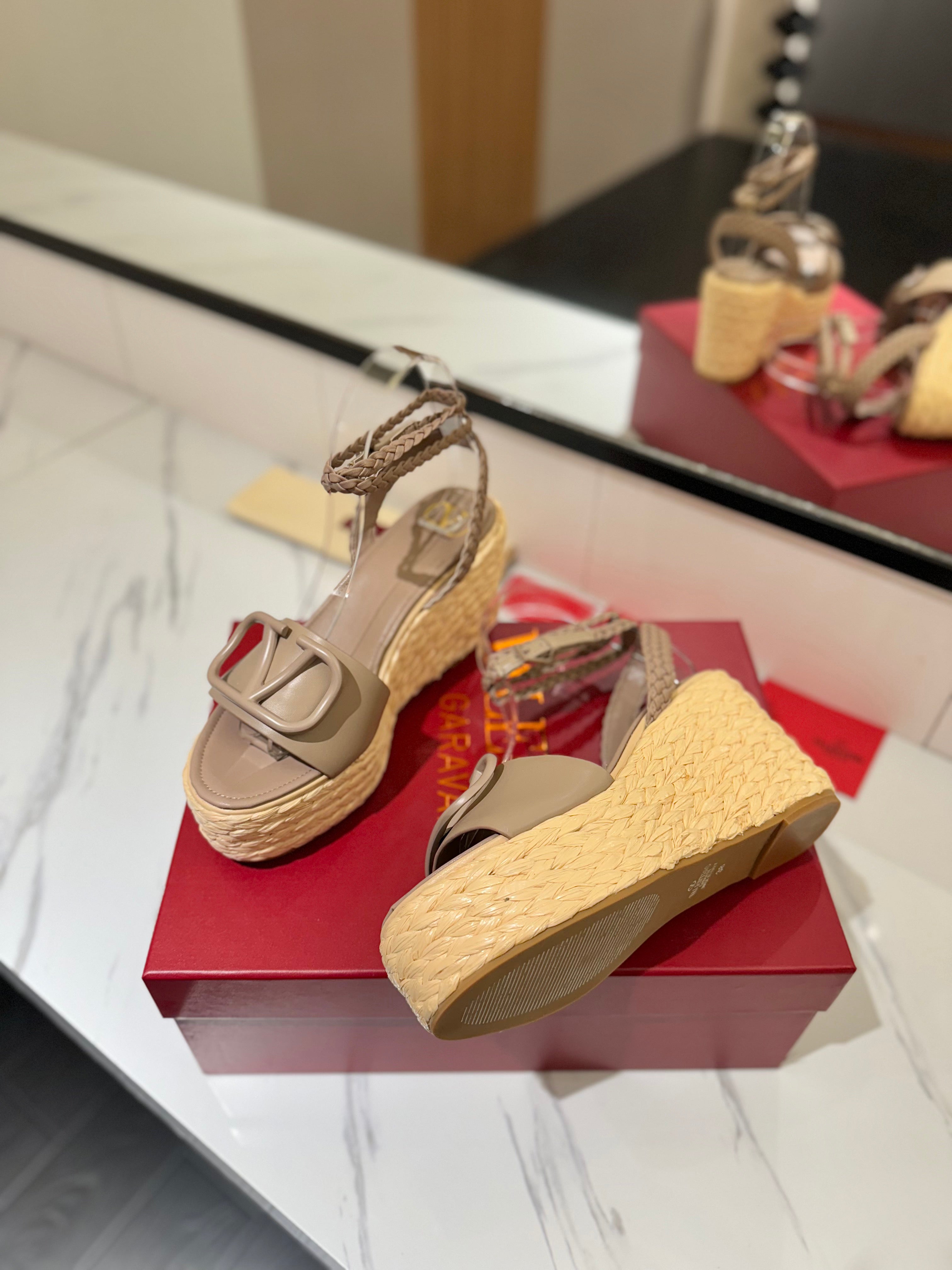 VLTN ESPADRILLE WEDGE SANDALS 25S 90 MM IN BEIGE BROWN LAMBSKIN STYLE 7