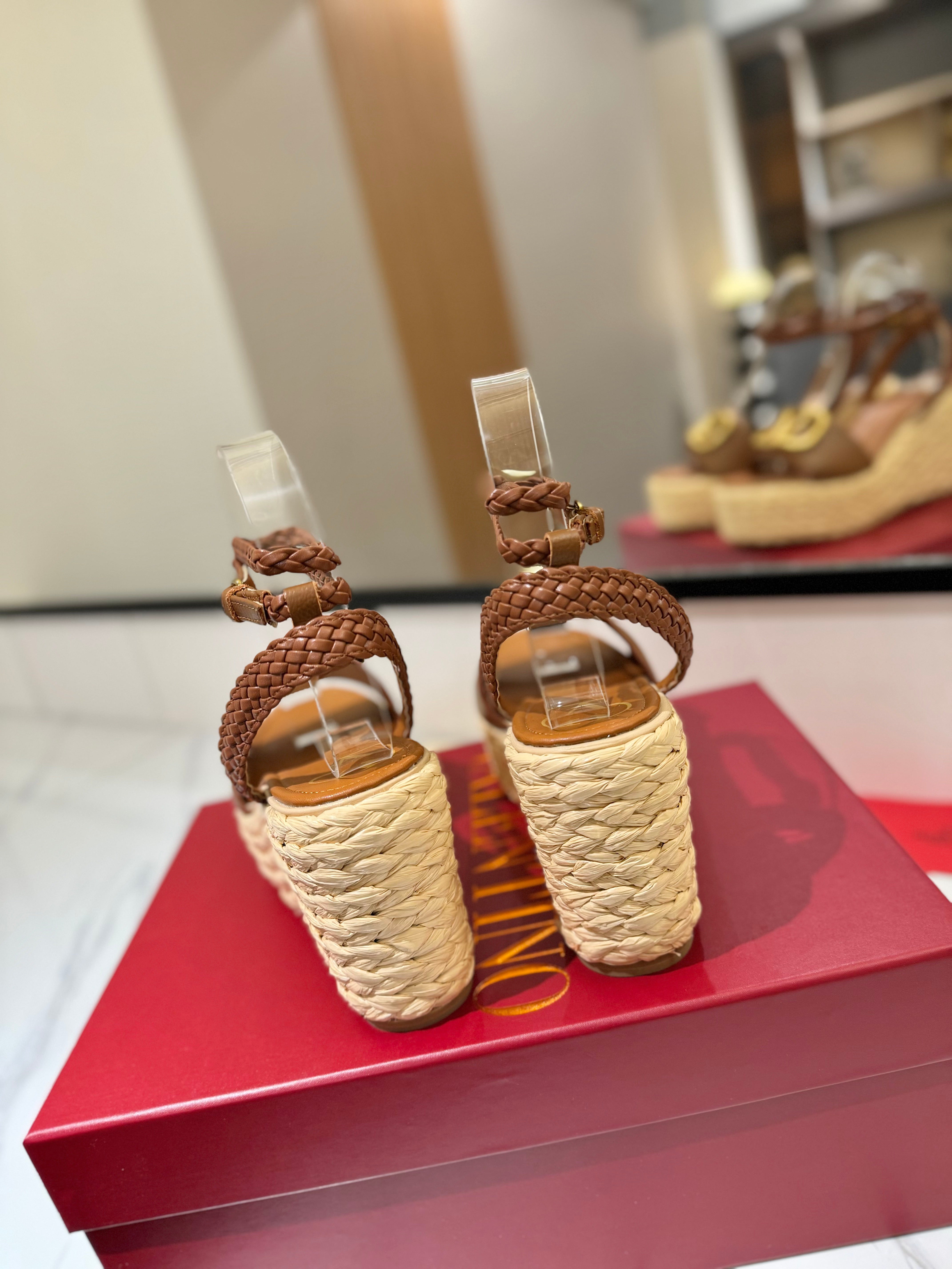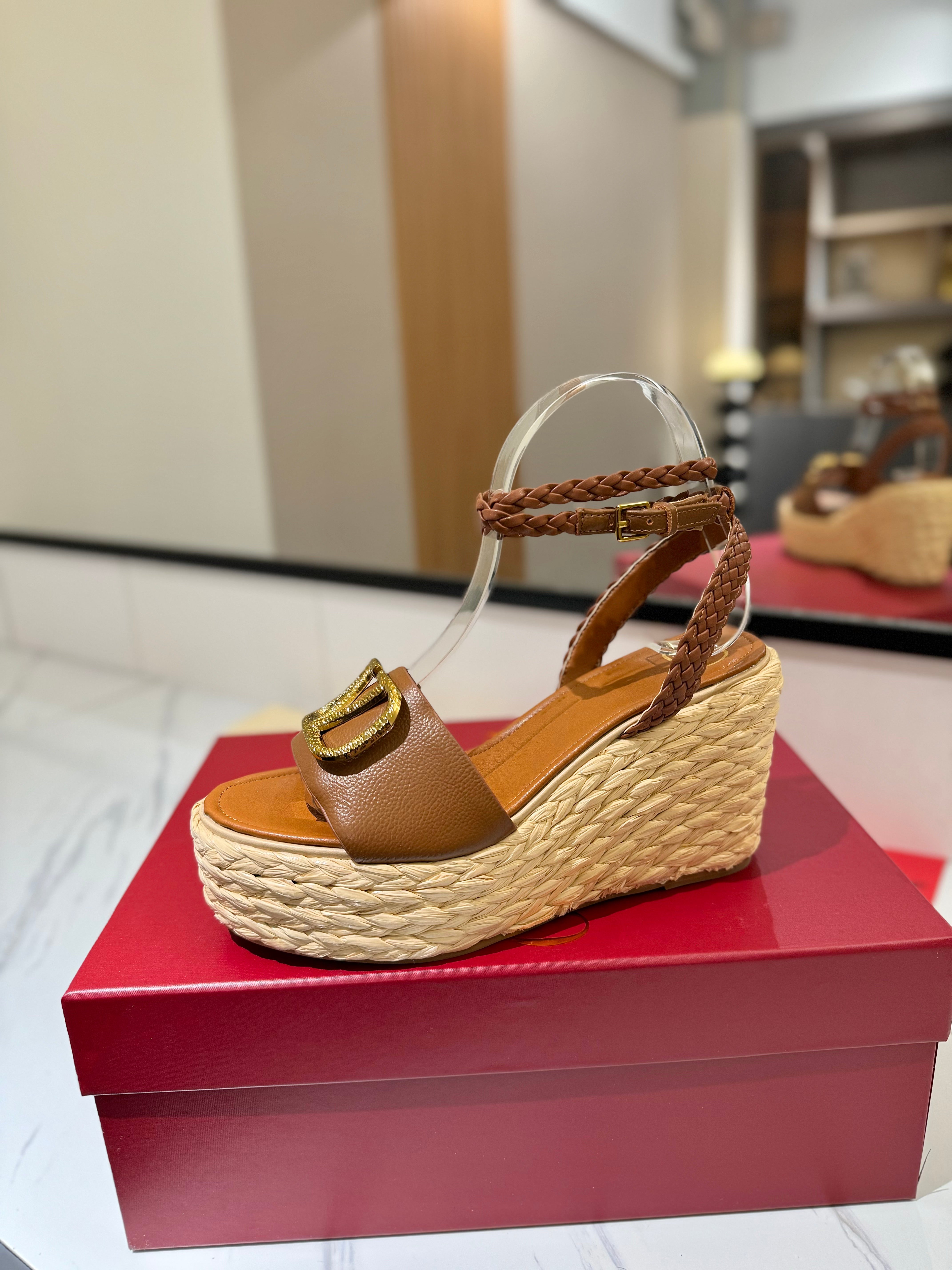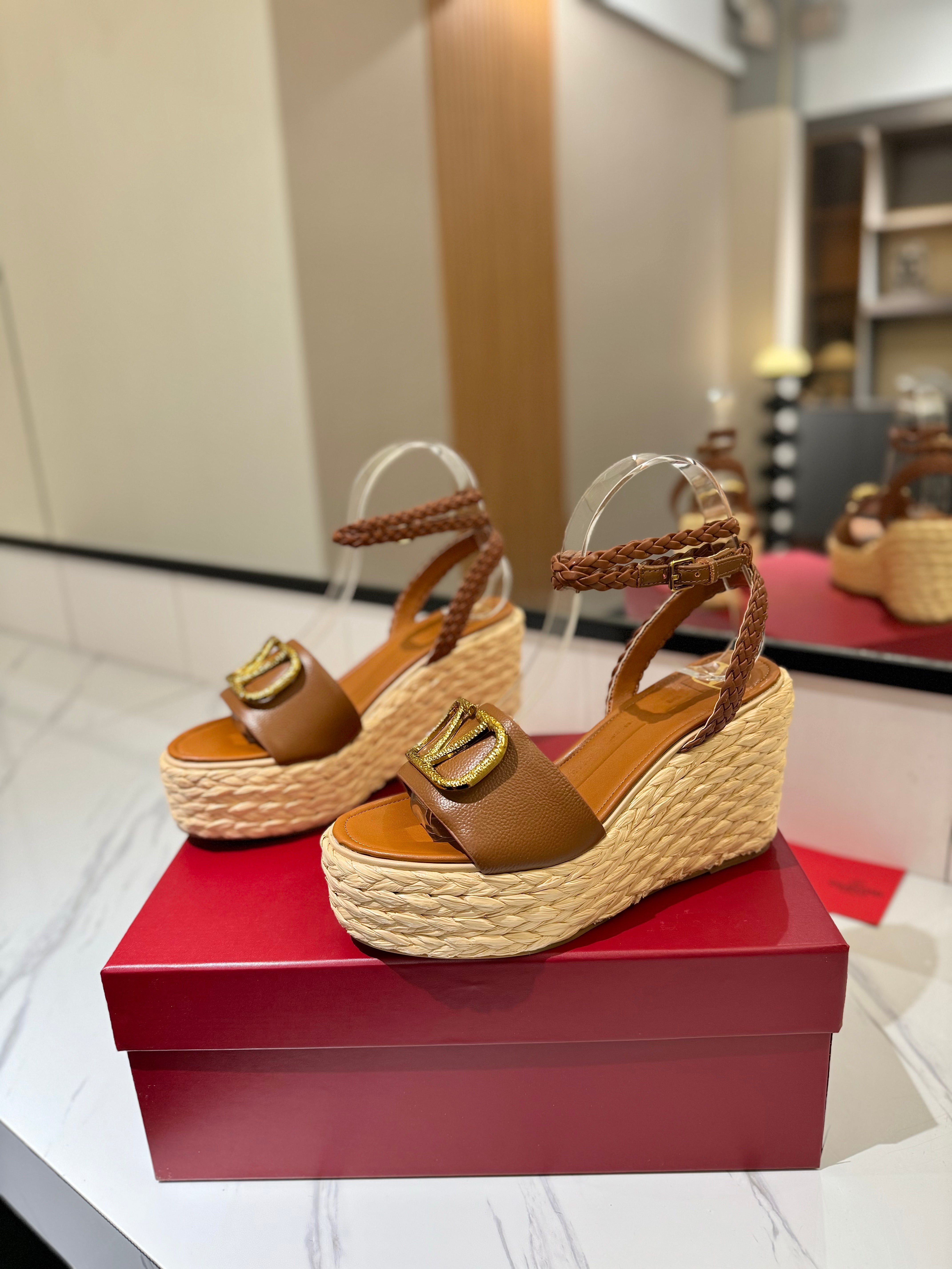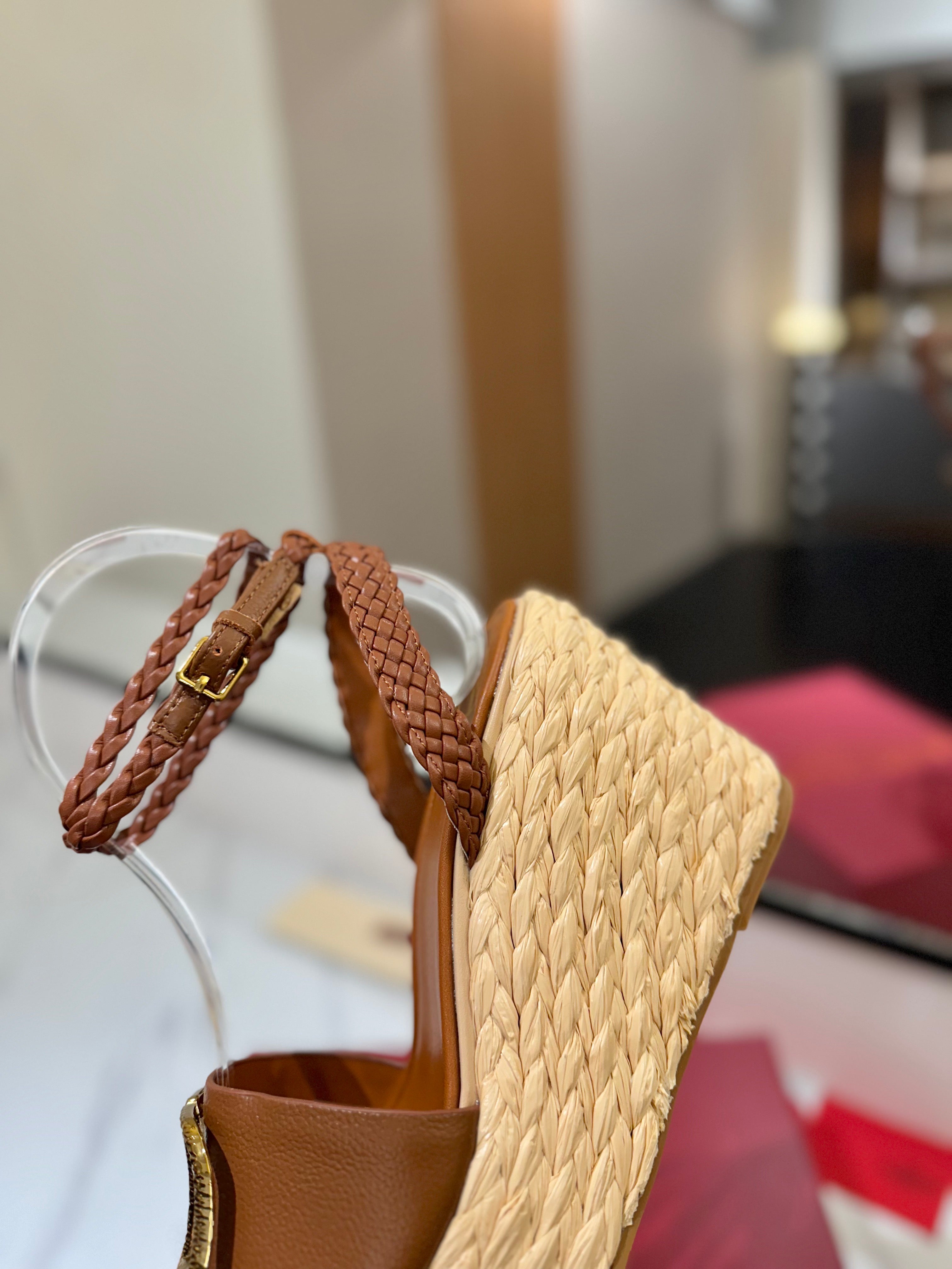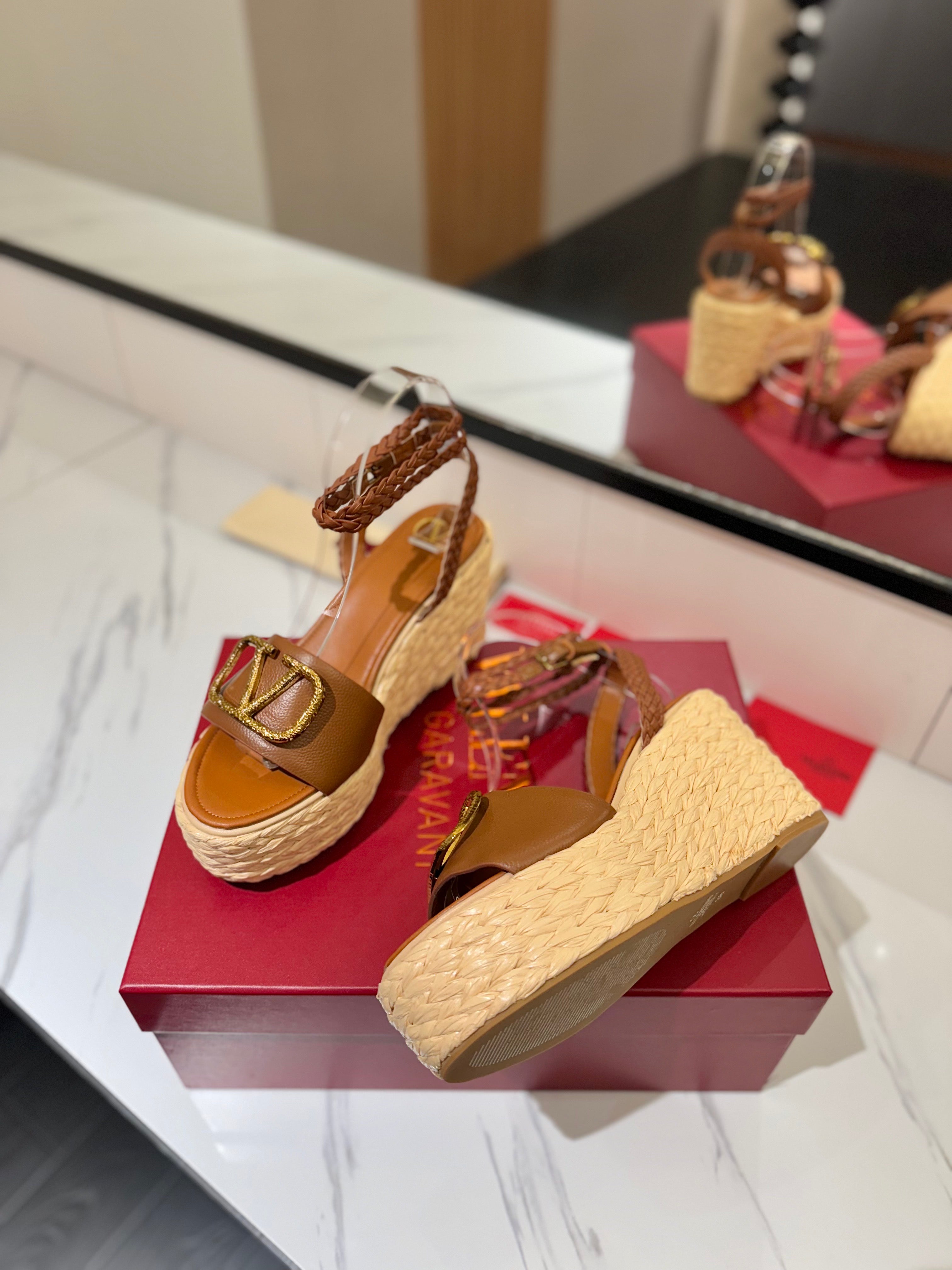 VLTN ESPADRILLE WEDGE SANDALS 25S 90 MM IN BROWN LAMBSKIN STYLE 4