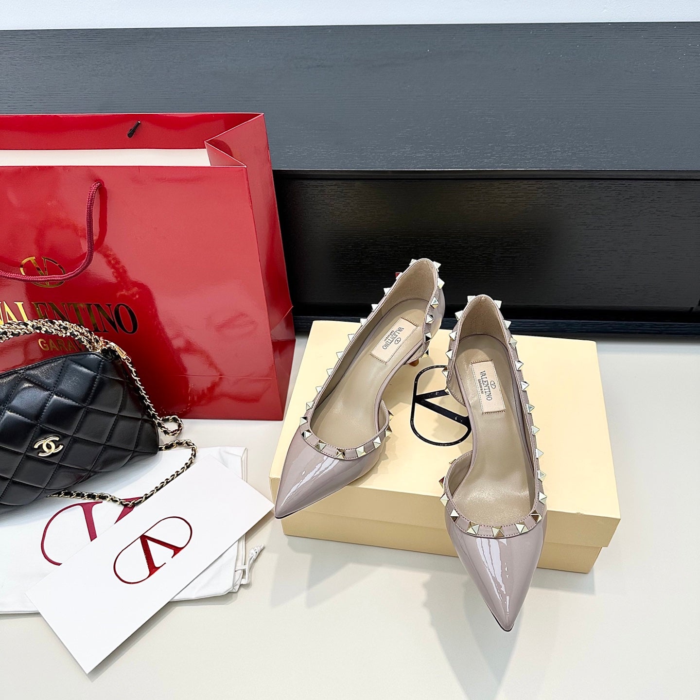 VLTN ROCKSTUD HEELS 25S 60 MM IN SOFT LILAC BEIGE GLOSSY LEATHER
