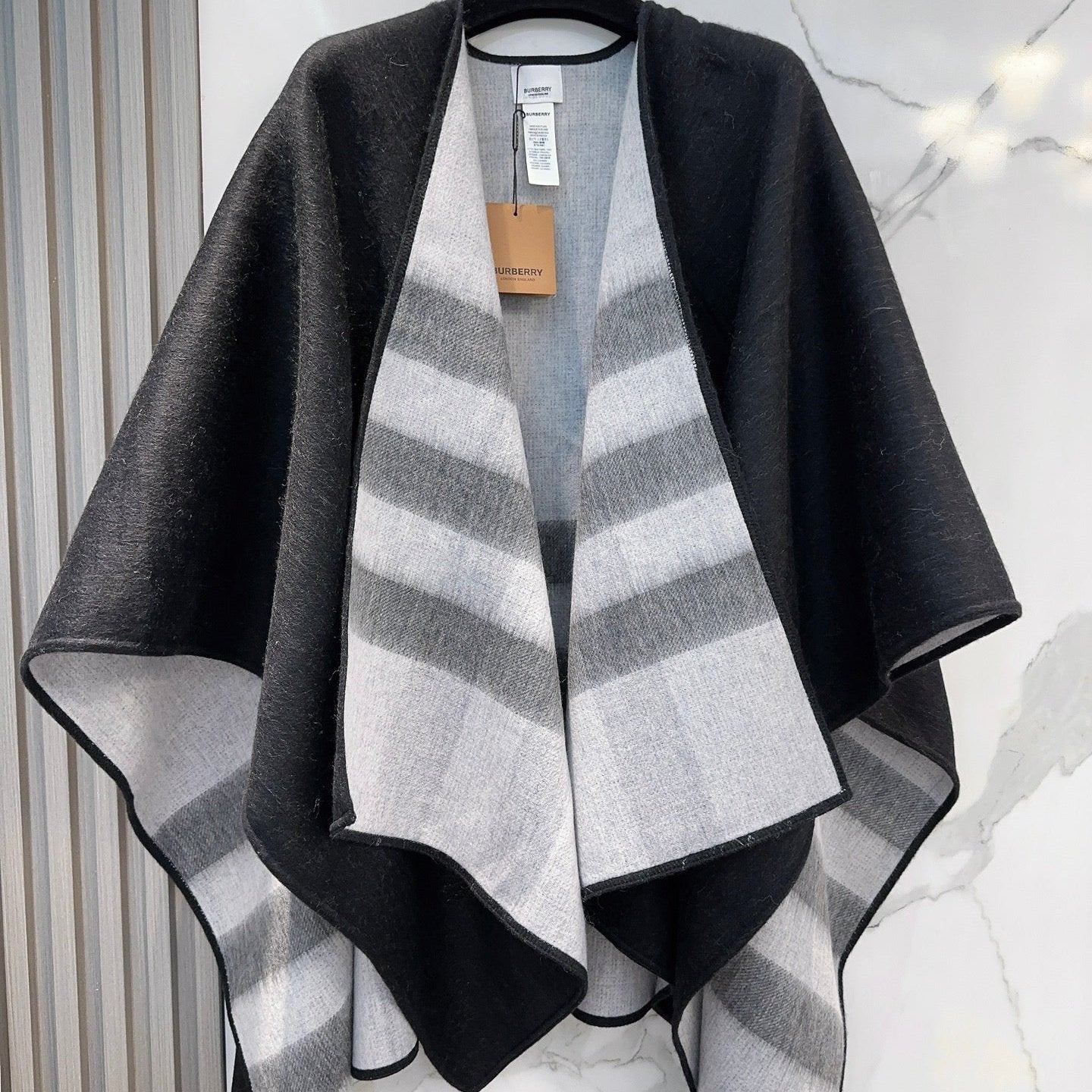 WOOL CAPE 140 CM BLACK AND LIGHT GRAY 394535
