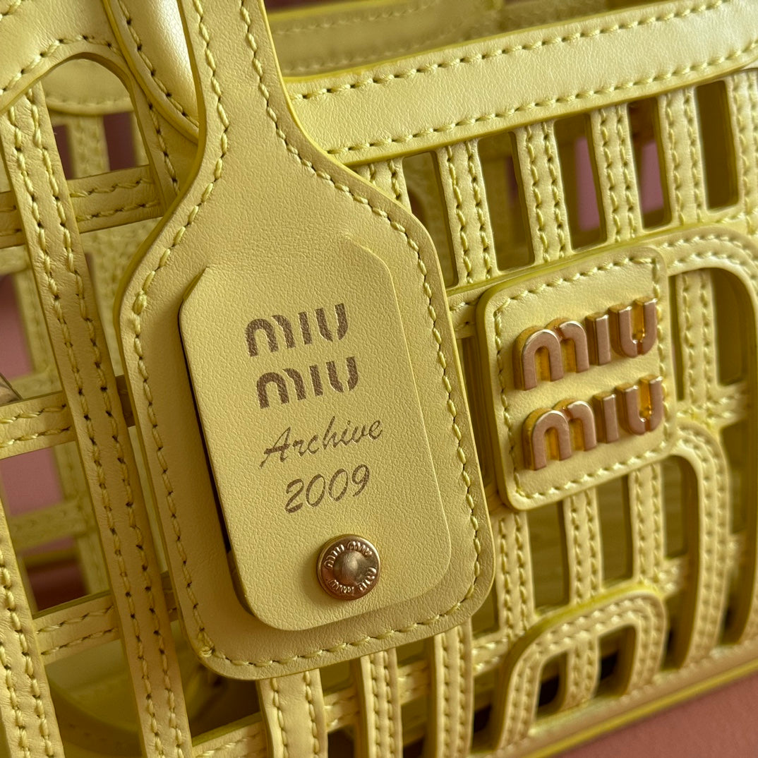 WOVEN HOLLOW BAG 24 IN LEMON YELLOW CALFSKIN