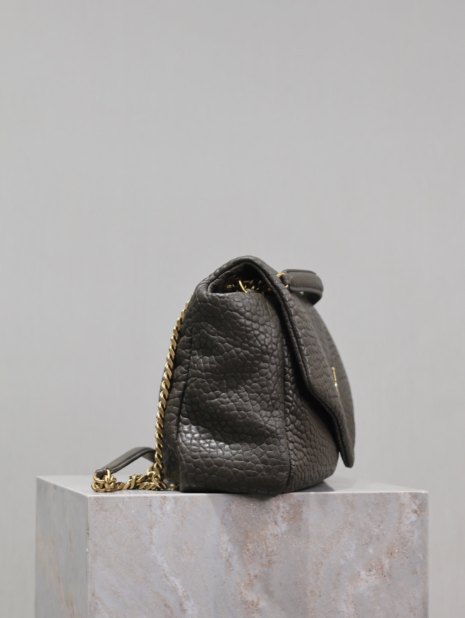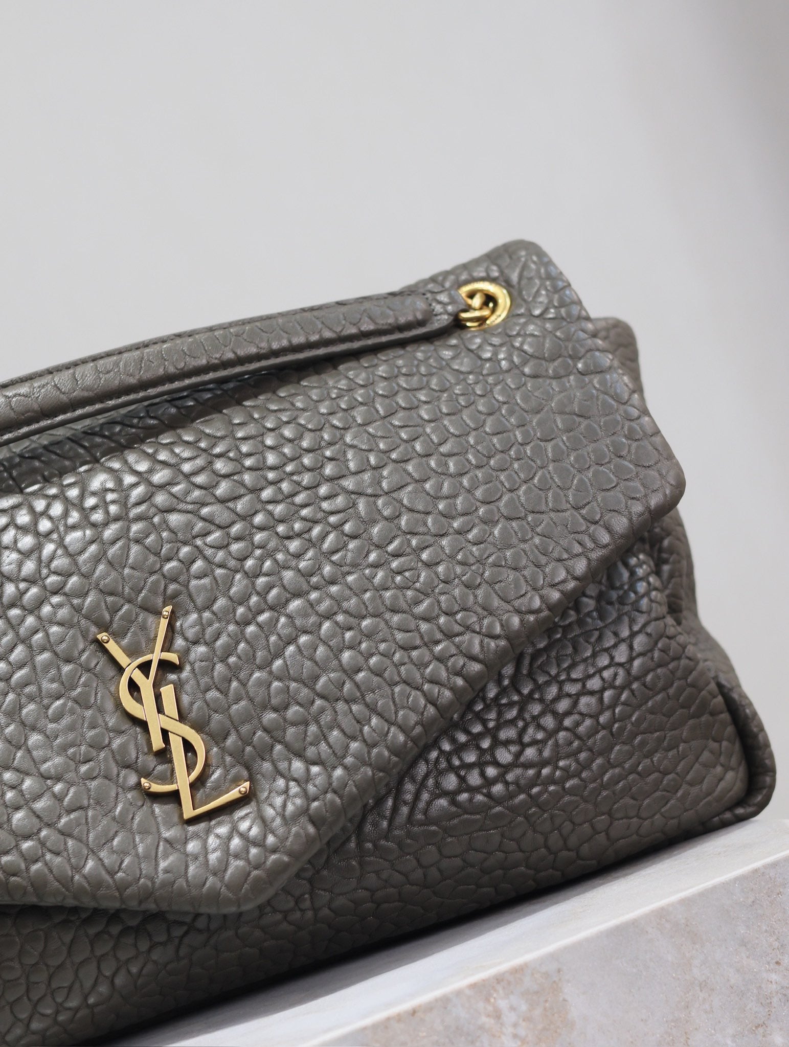 YSL 25S CALYPSO BAG 38 IN ARMY GREEN GRAINED LAMBSKIN GOLD HARDWARE