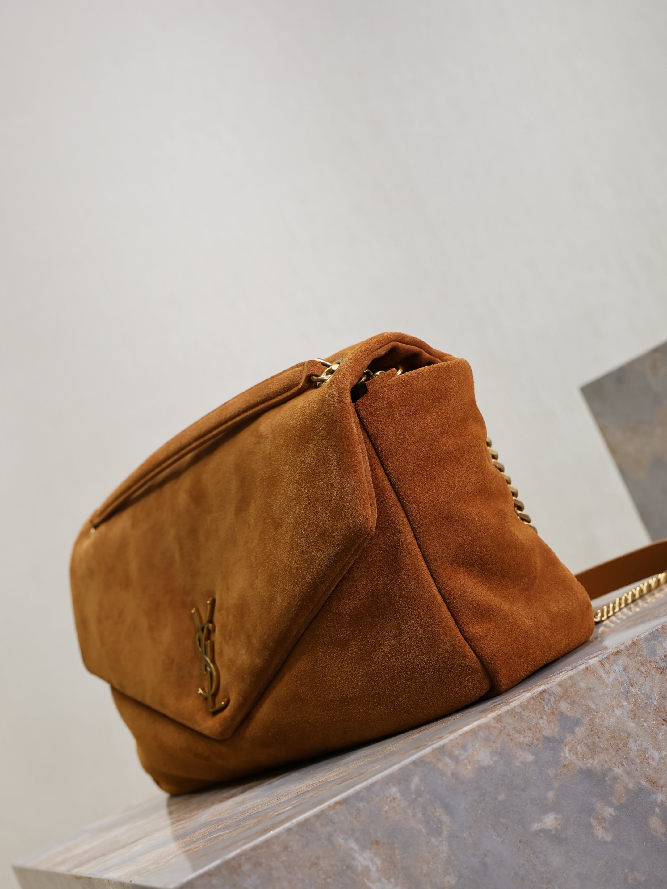 YSL 25S CALYPSO GM 38 IN DARK CARAMEL SUEDE GOLD HARDWRE