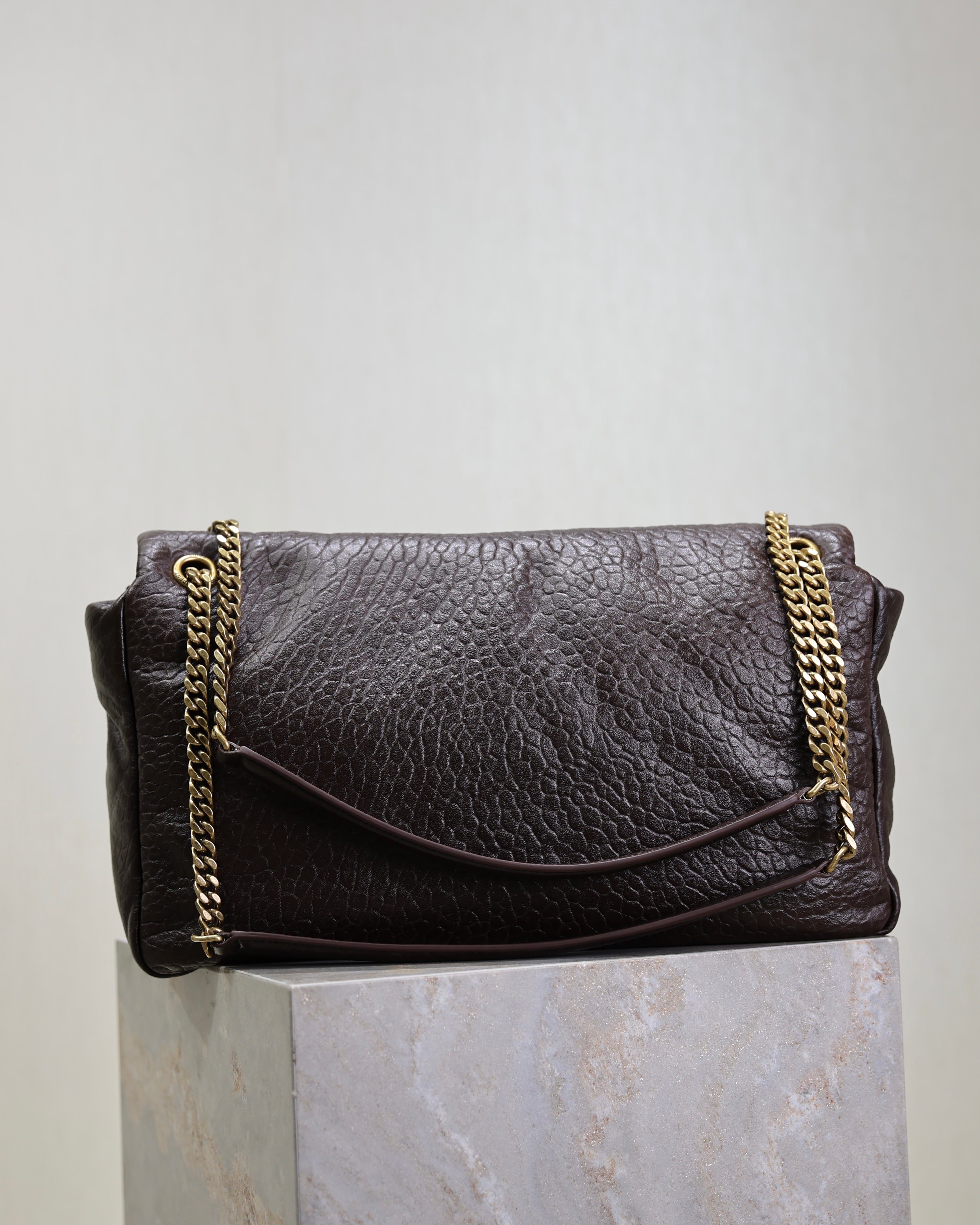 YSL 25S CALYPSO GM 38 IN DARK CHOCOLATE CALFSKIN GOLD HARDWARE