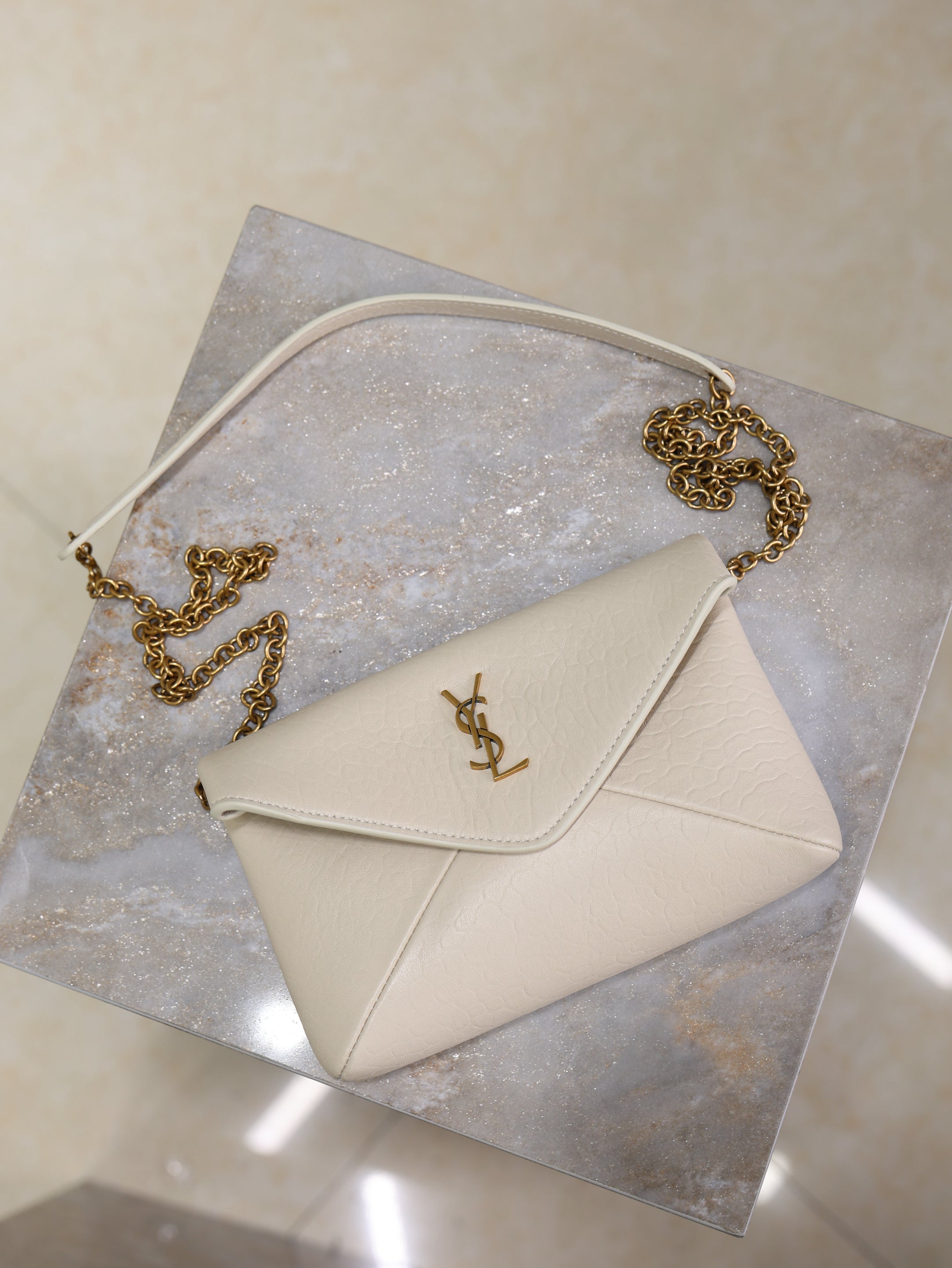 YSL 25S CALYPSO MINI 19 IN BLANC VINTAGE LAMBSKIN GOLD HARDWARE