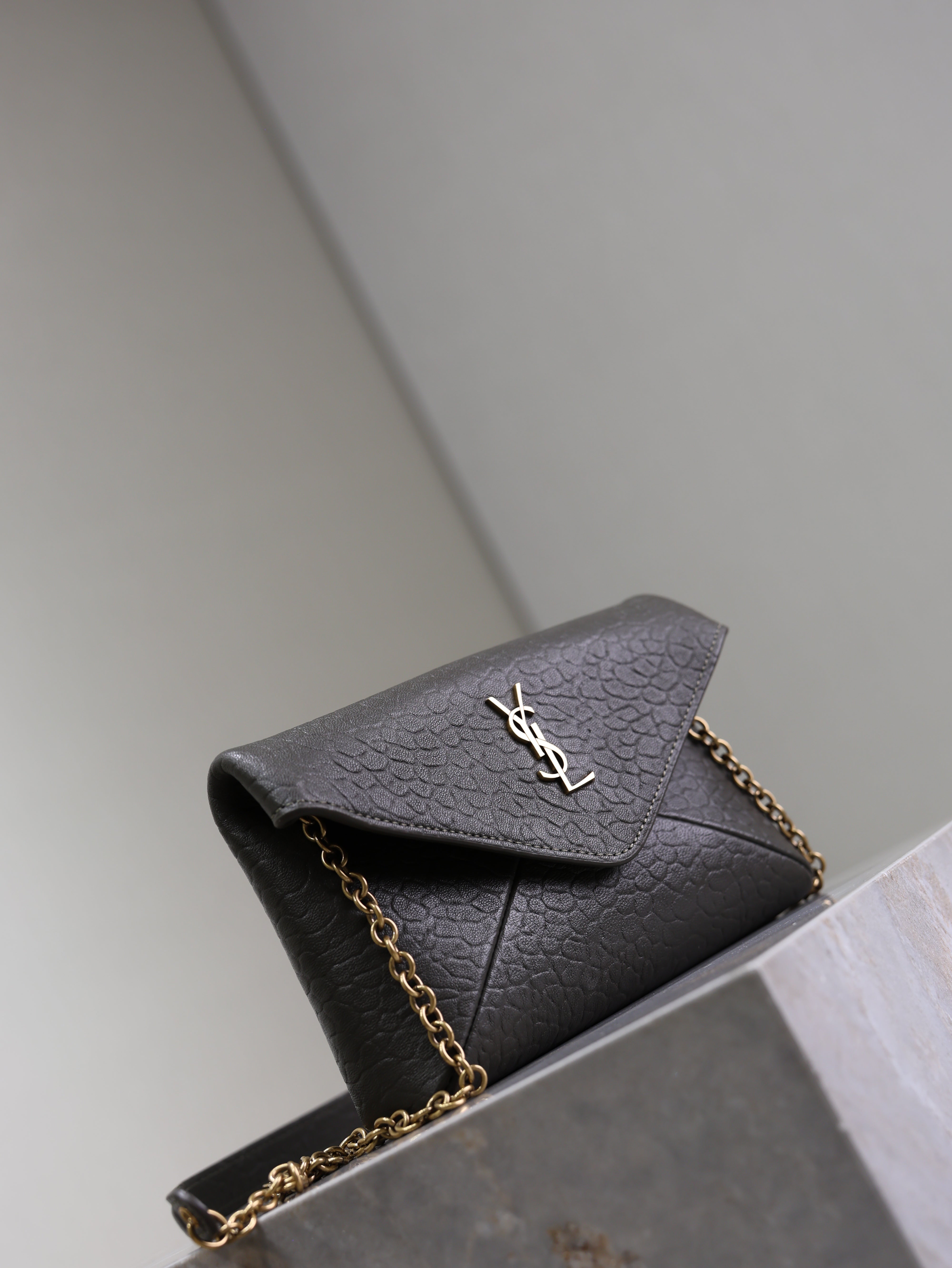 YSL 25S CALYPSO MINI 19 IN CHARCOAL GRAY LAMBSKIN GOLD HARDWARE