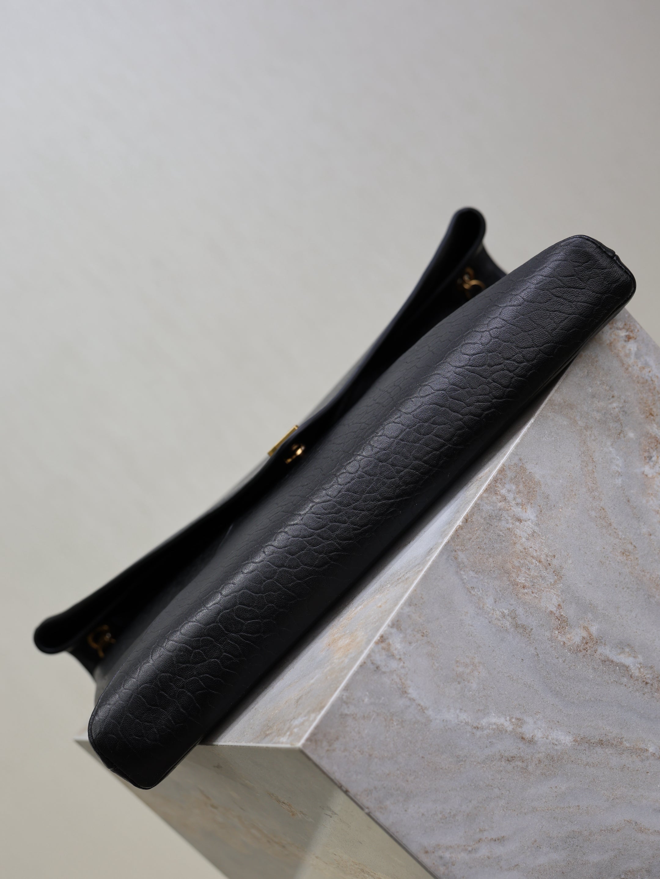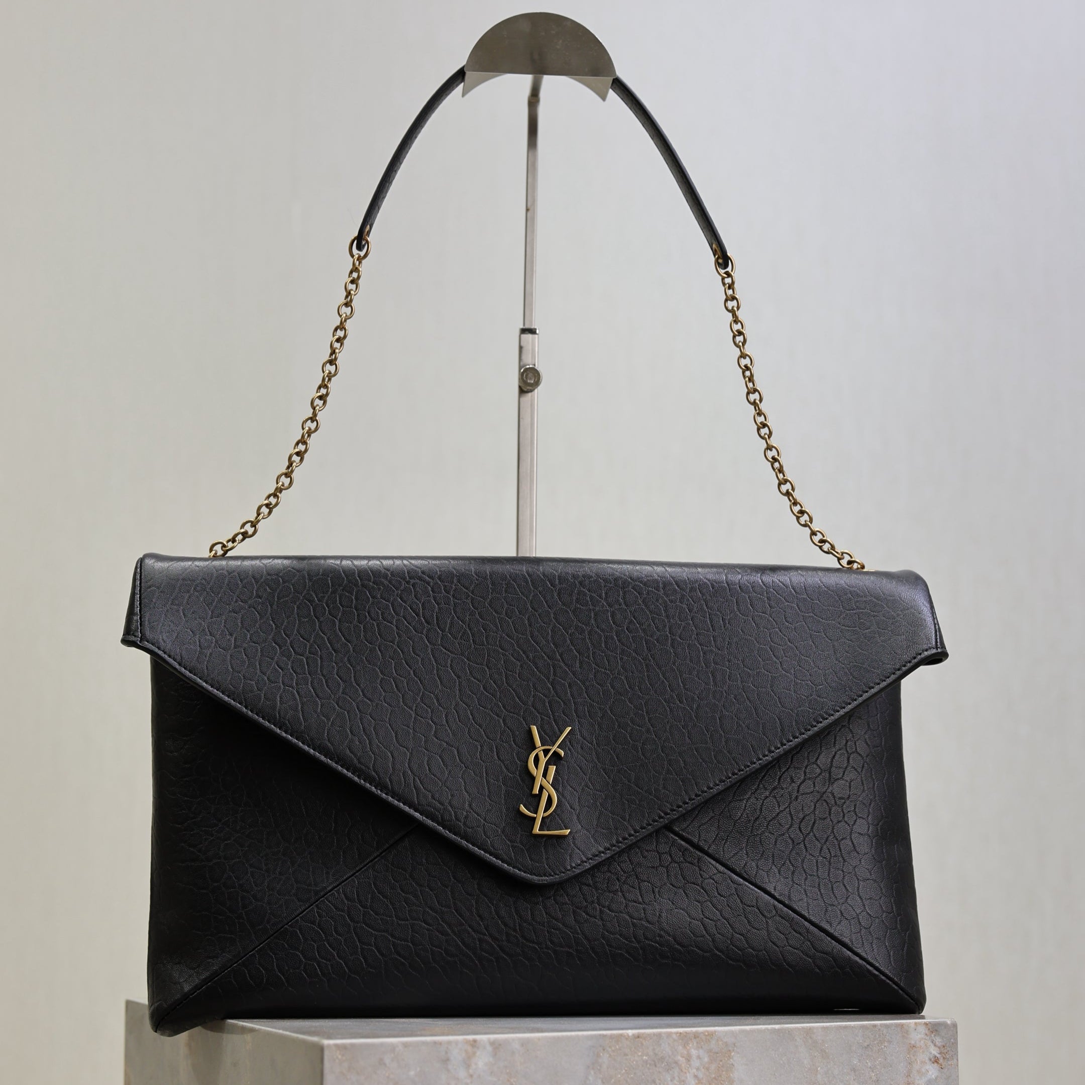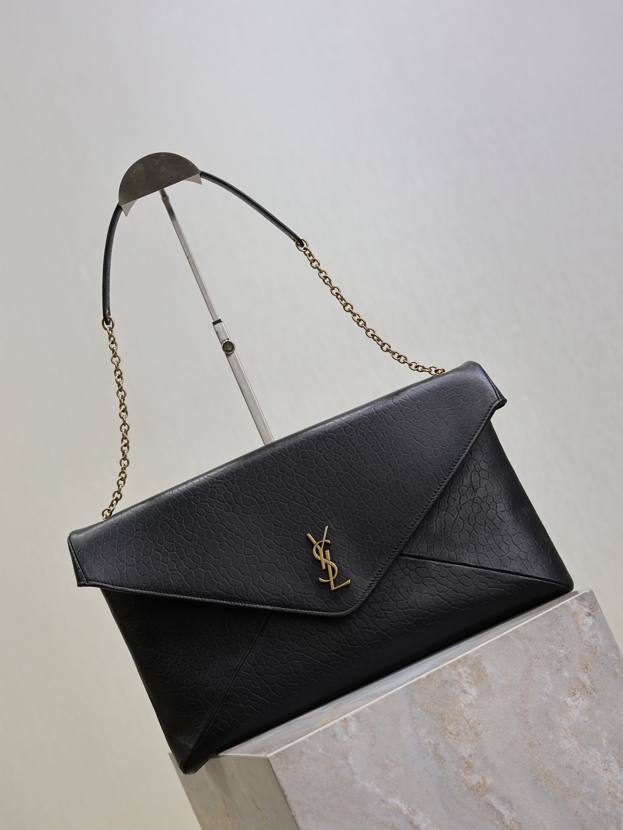 YSL 25S CASSANDRE ENVELOPE MESSENGER 35 IN BLACK LAMBSKIN GOLD HARDWRE