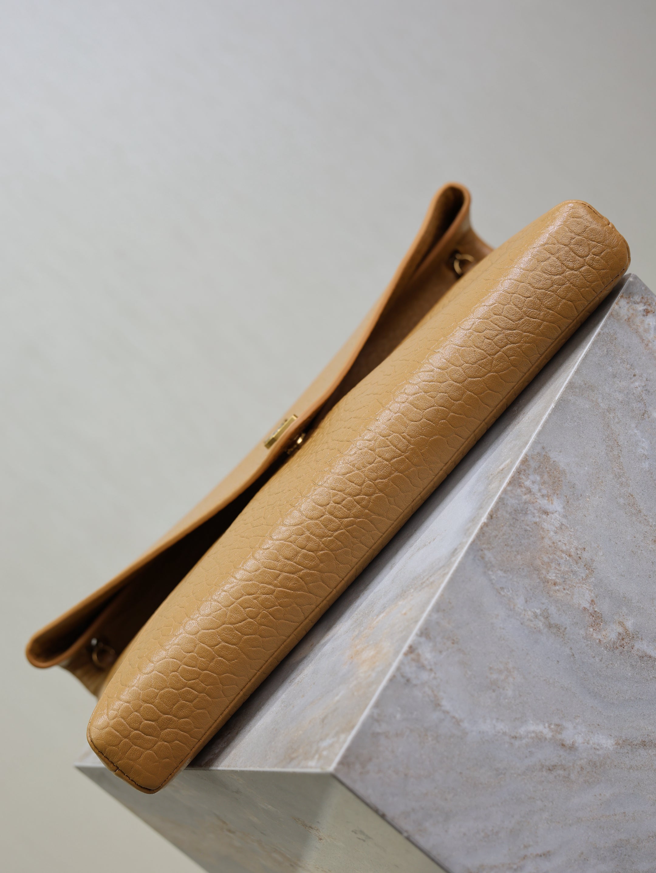 YSL 25S CASSANDRE ENVELOPE MESSENGER 35 IN GOLDEN BROWN LAMBSKIN GOLD HARDWRE