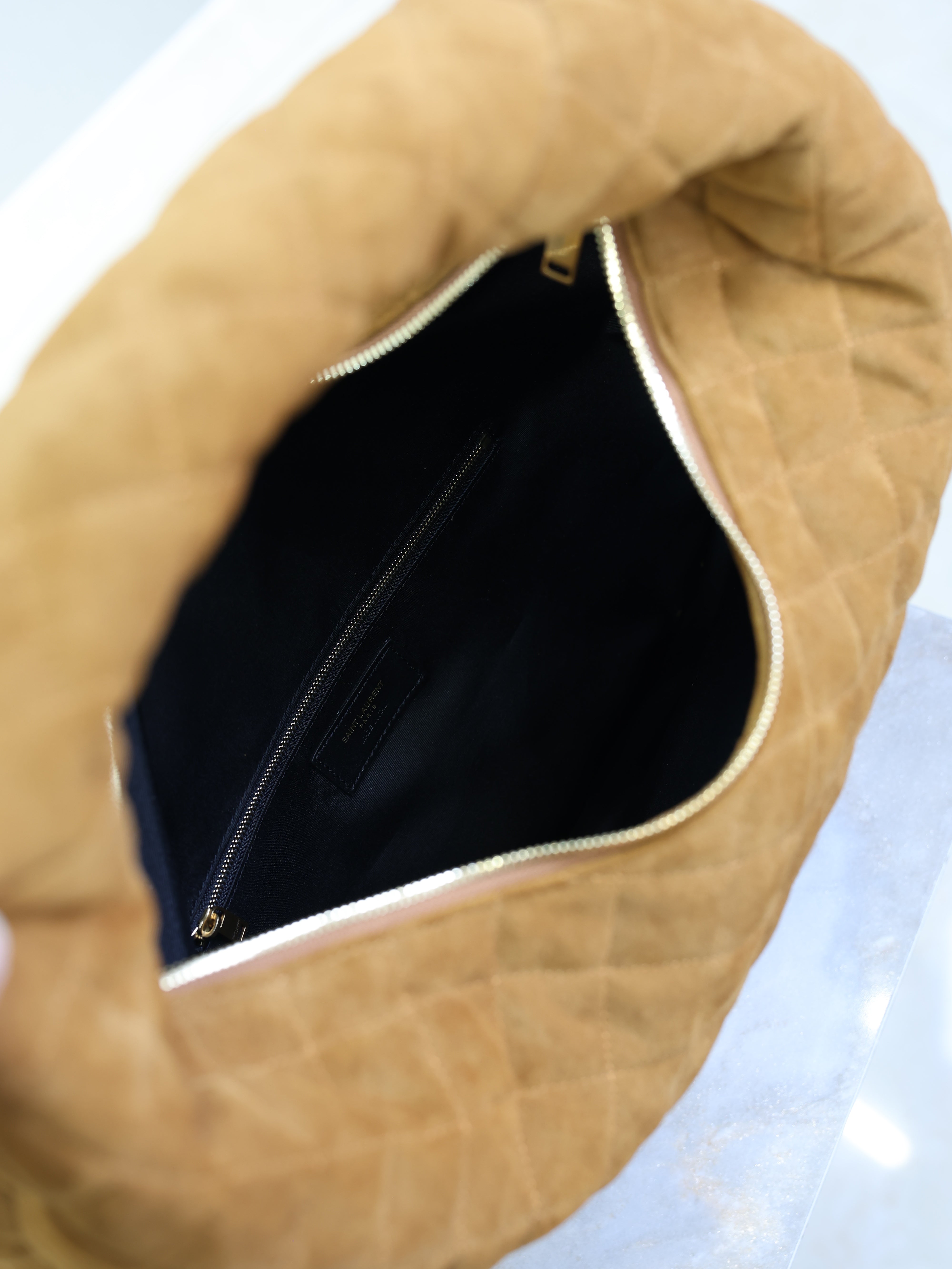 YSL 25S ICARINO 44 IN CARAMEL QUILTED SUEDE GOLD HARDWRE