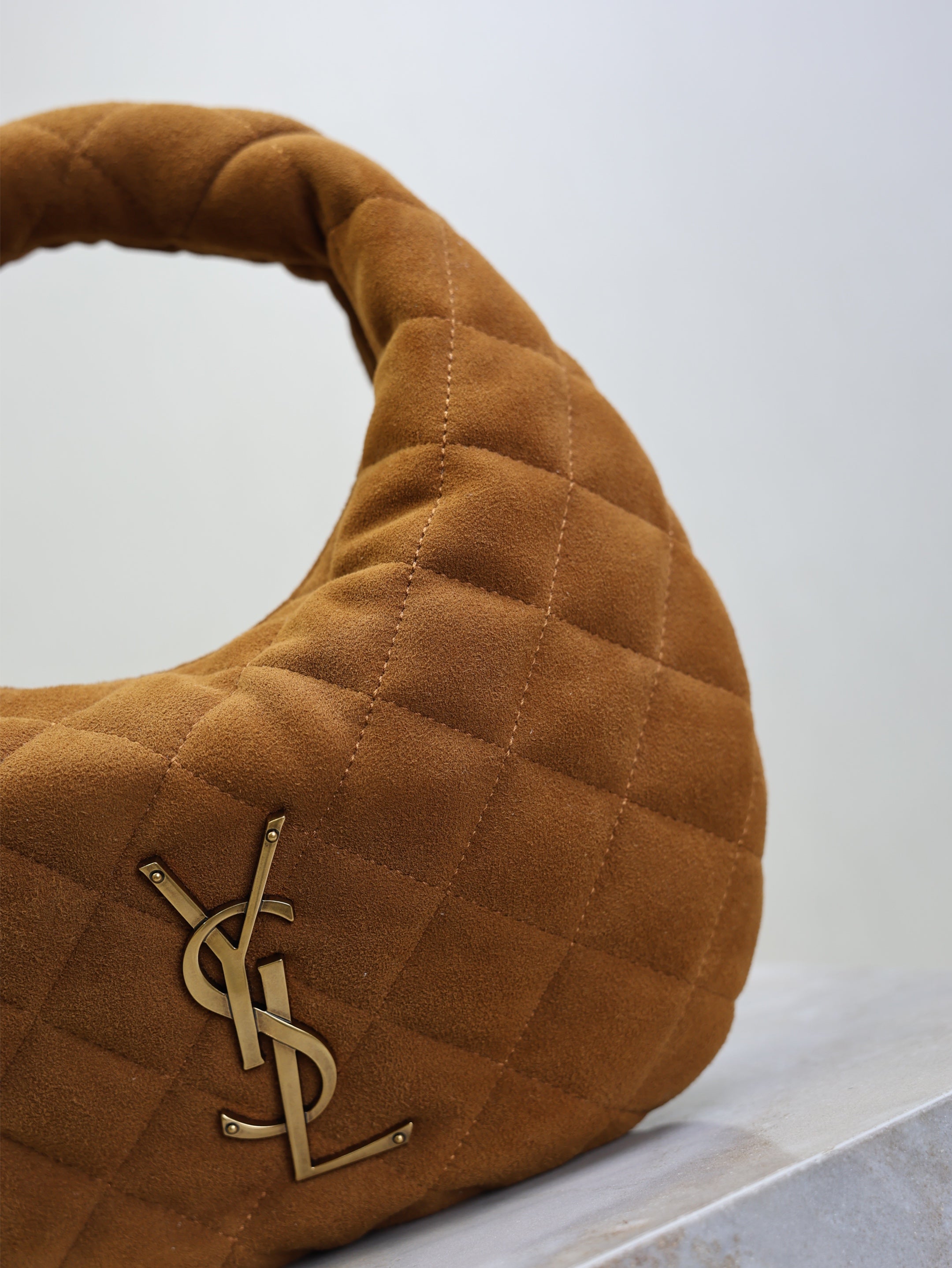YSL 25S ICARINO MINI 17 IN CARAMEL QUILTED SUEDE GOLD HARDWARE