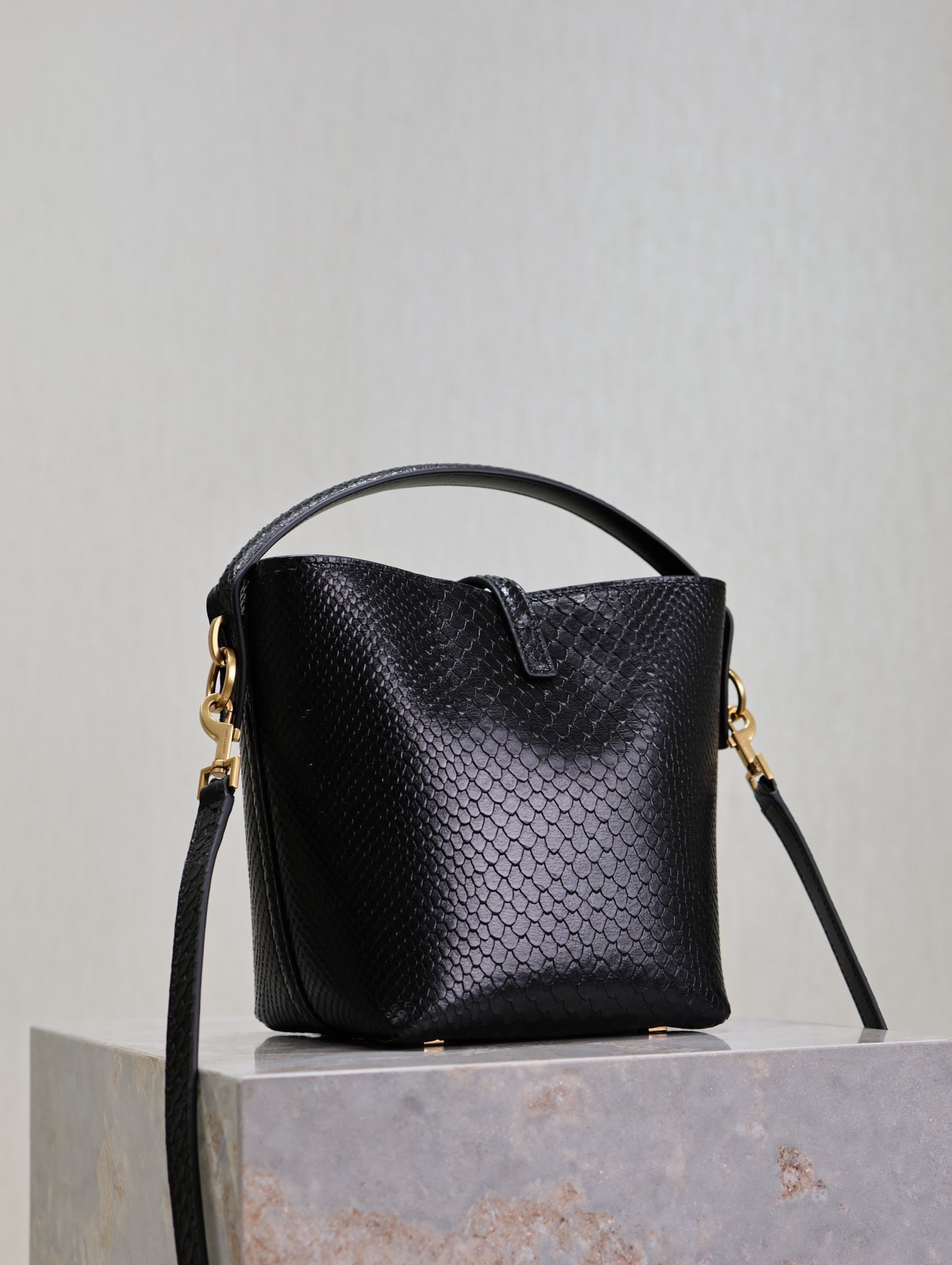 YSL 25S LE 37 20 IN BLACK SNAKE EMBOSSED CALFSKIN GOLD HARDWARE