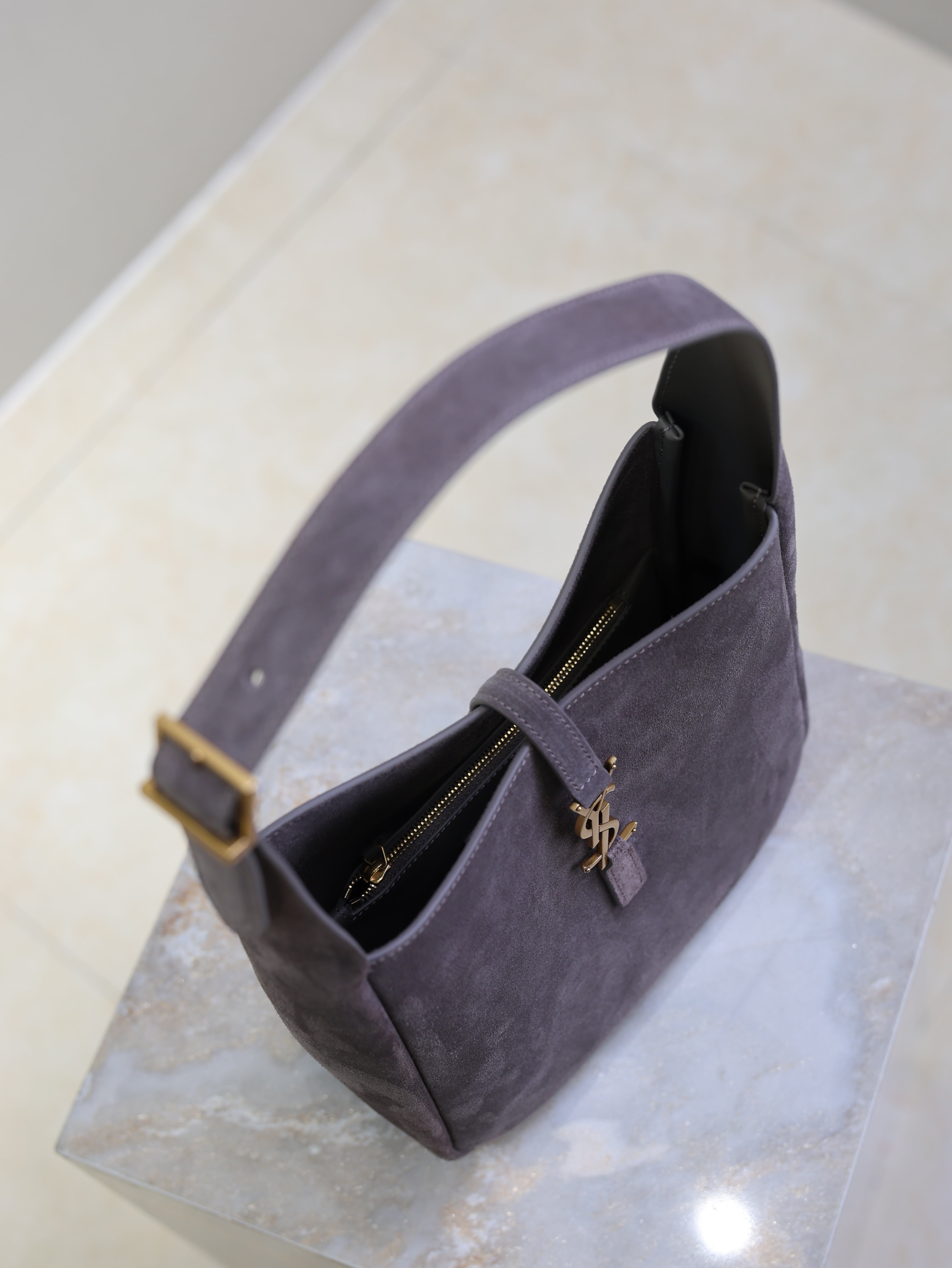YSL 25S LE 5 À 7 SUPPLE SMALL 23 IN DARK GRAY SUEDE GOLD HARDWARE