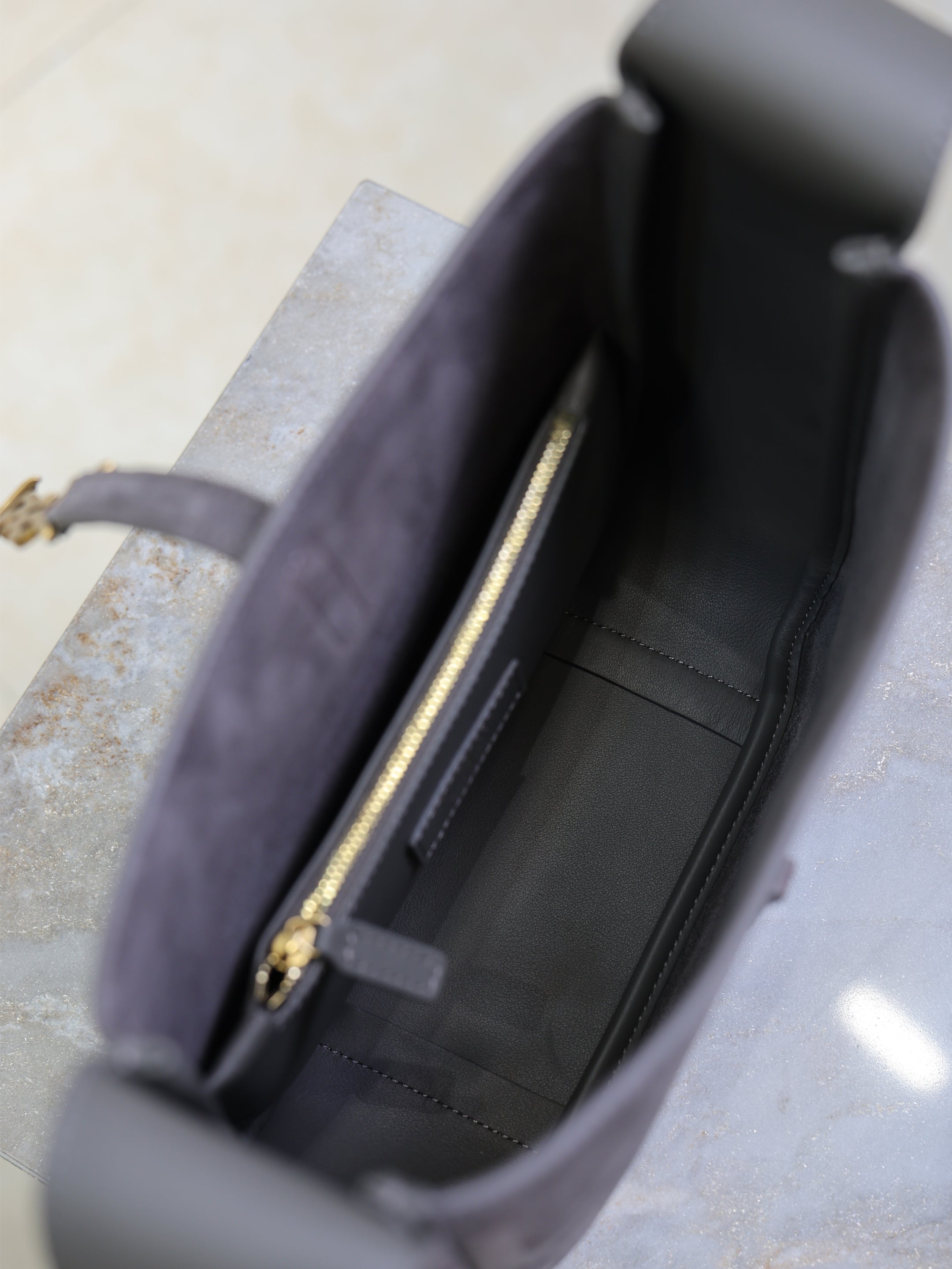 YSL 25S LE 5 À 7 SUPPLE SMALL 23 IN DARK GRAY SUEDE GOLD HARDWRE
