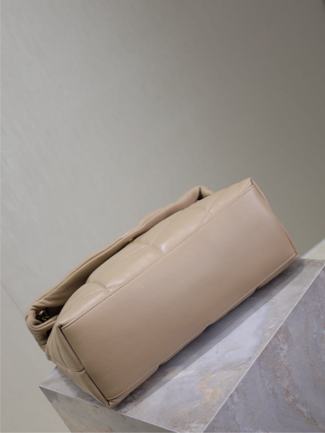 YSL 25S LOULOU PUFFER GM 35 IN BROWN CALFSKIN GOLD HARDWRE