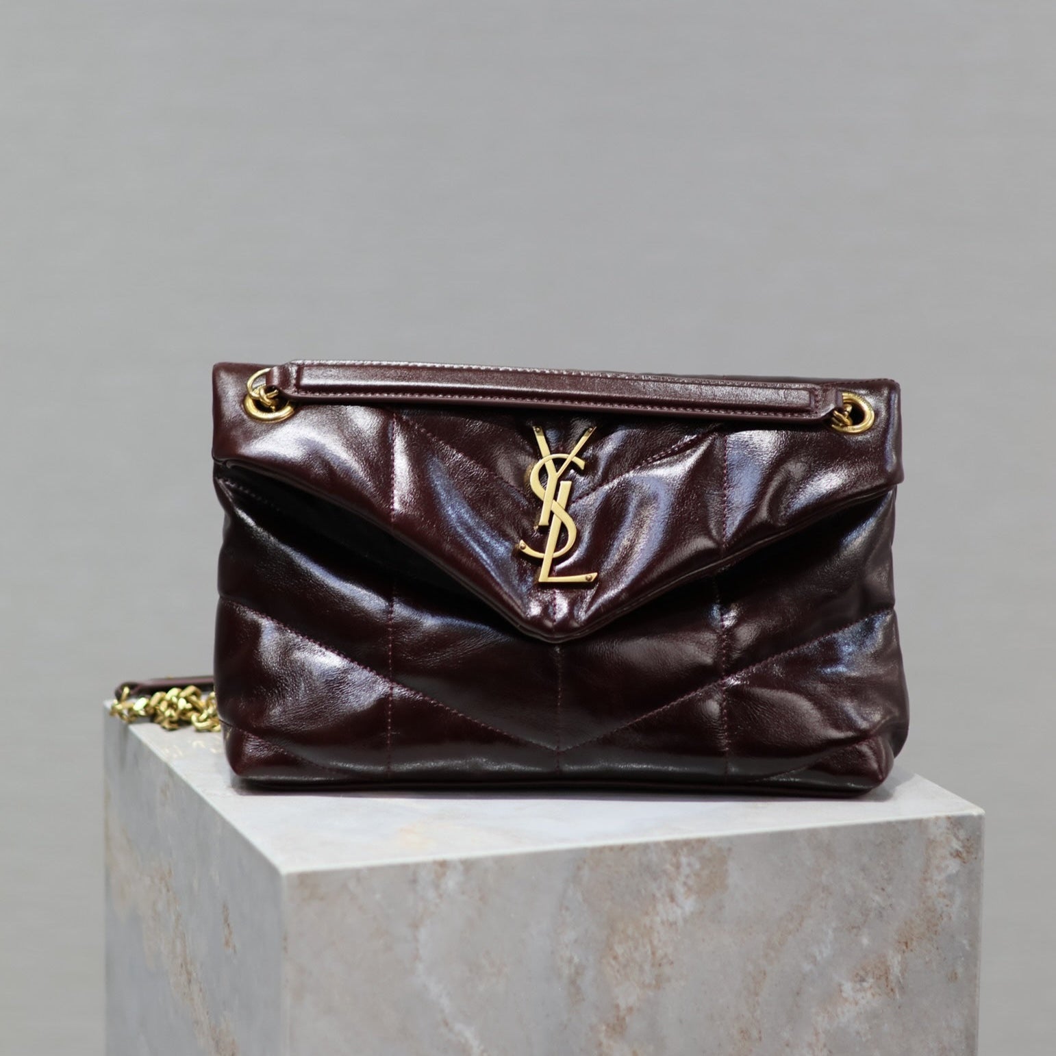 YSL 25S LOULOU PUFFER MEDIUM 29 IN DARK BURGUNDY CALFSKIN