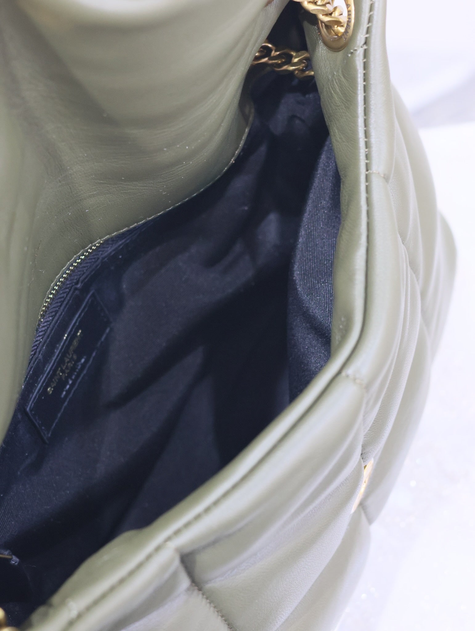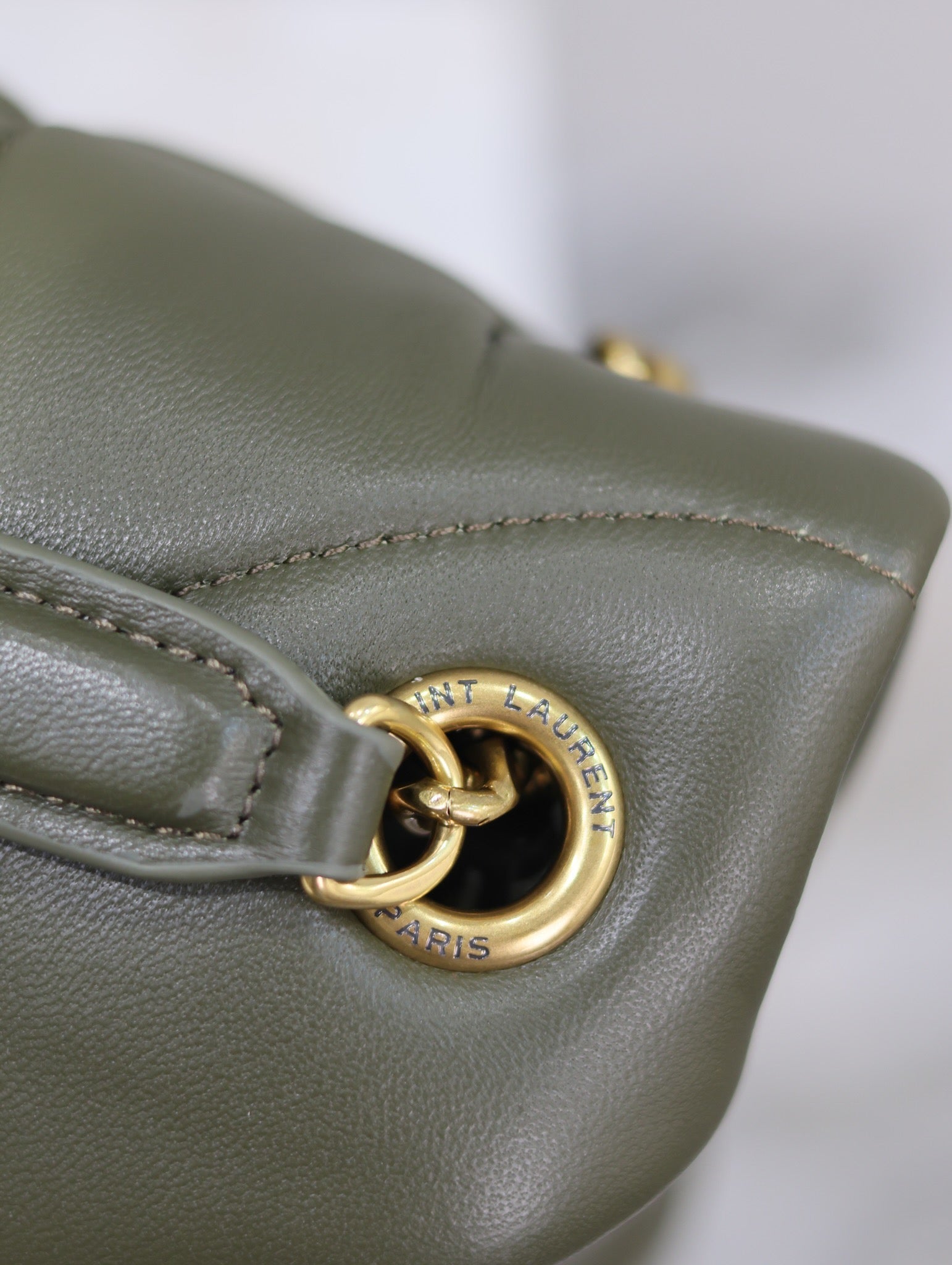 YSL 25S LOULOU PUFFER MM 29 IN DARK OLIVE CALFSKIN GOLD HARDWARE
