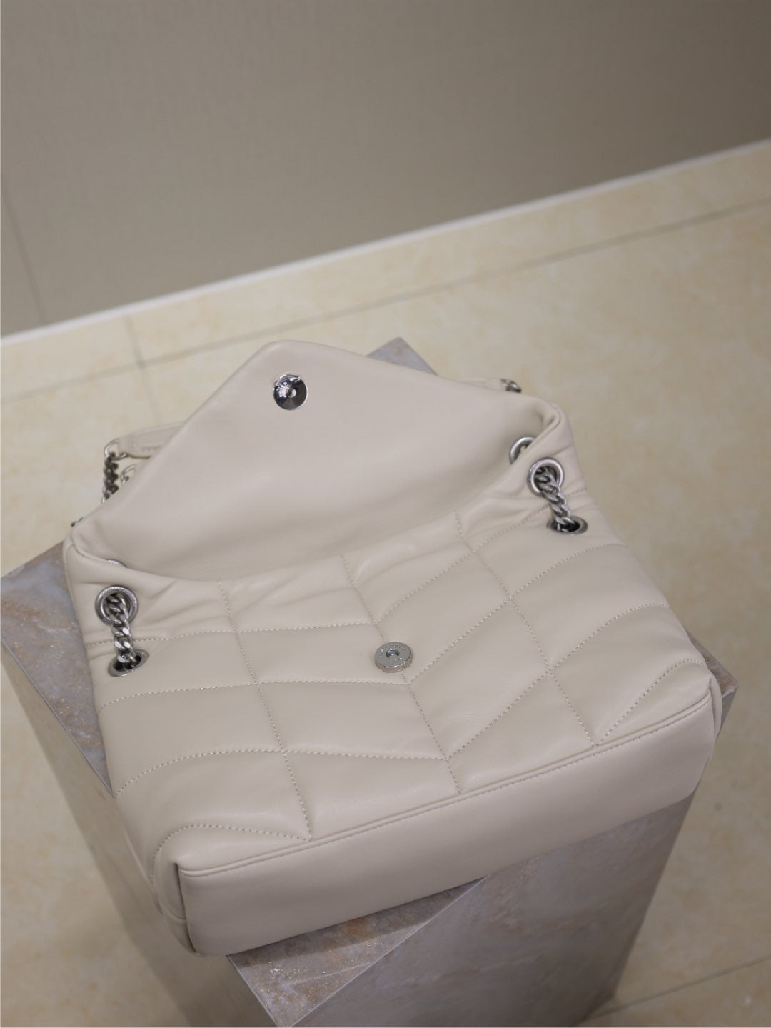 YSL 25S LOULOU PUFFER MM 29 IN SMOKEY TAUPE CALFSKIN SILVER HARDWARE