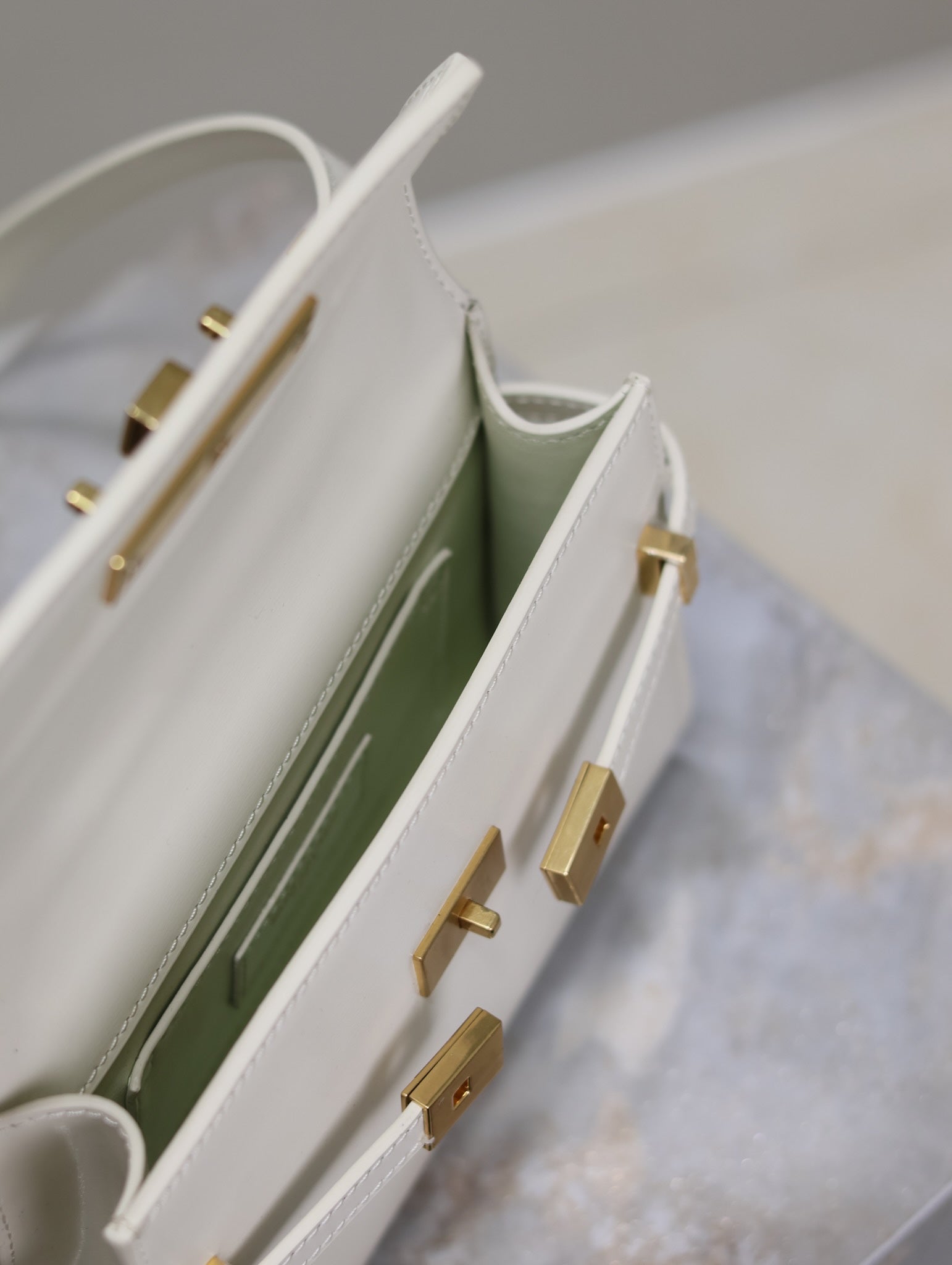 YSL 25S MINI MANHATTAN 19 IN BLANC VINTAGE CALFSKIN GOLD HARDWARE