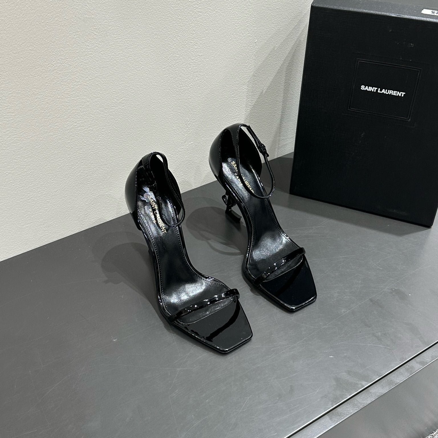 YSL HEELED SANDALS 25S 105 MM IN BLACK GLOSSY LAMBSKIN