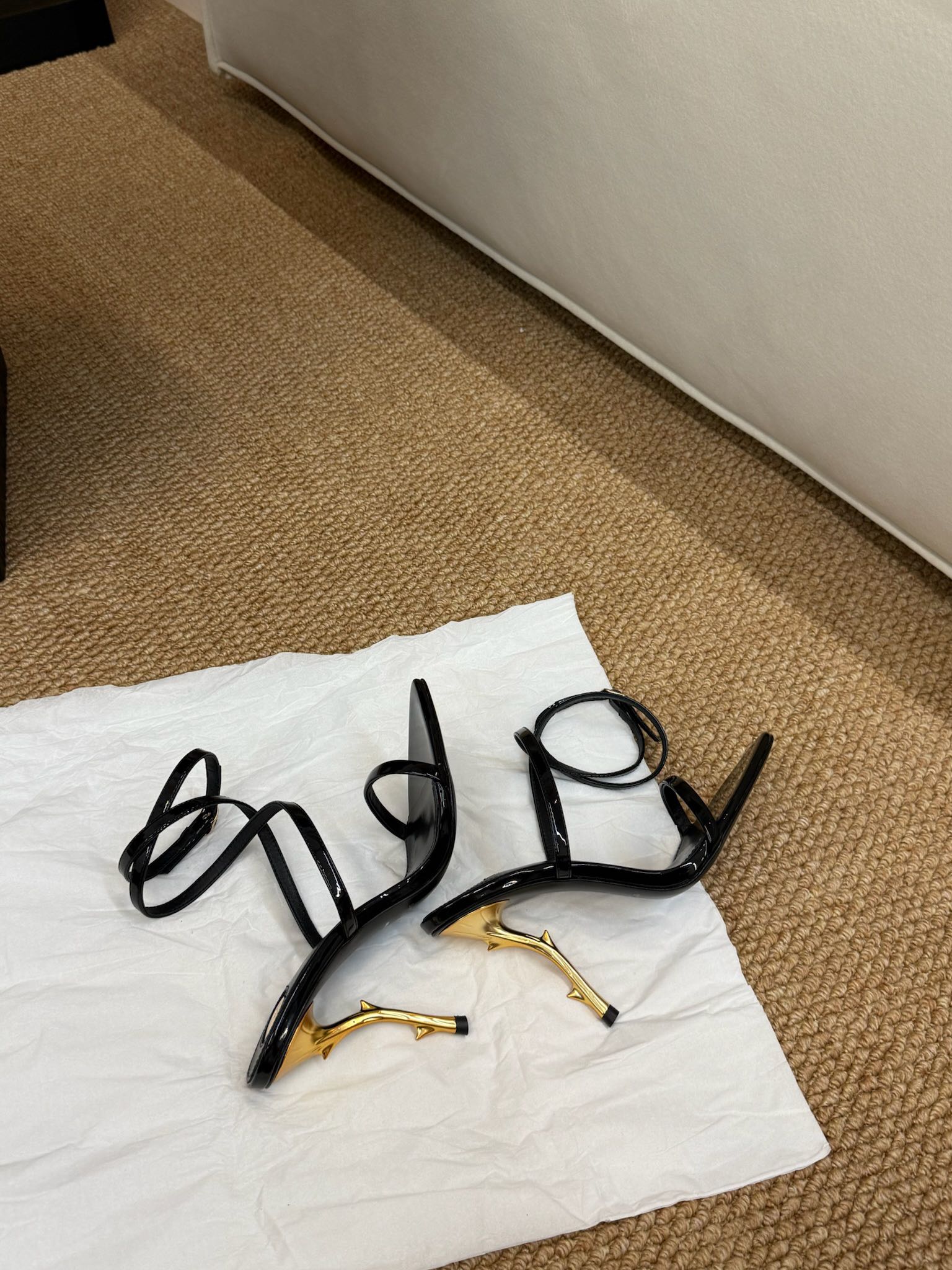 YSL HIGH HEEL SANDALS 25S IN BLACK SHINY LAMBSKIN