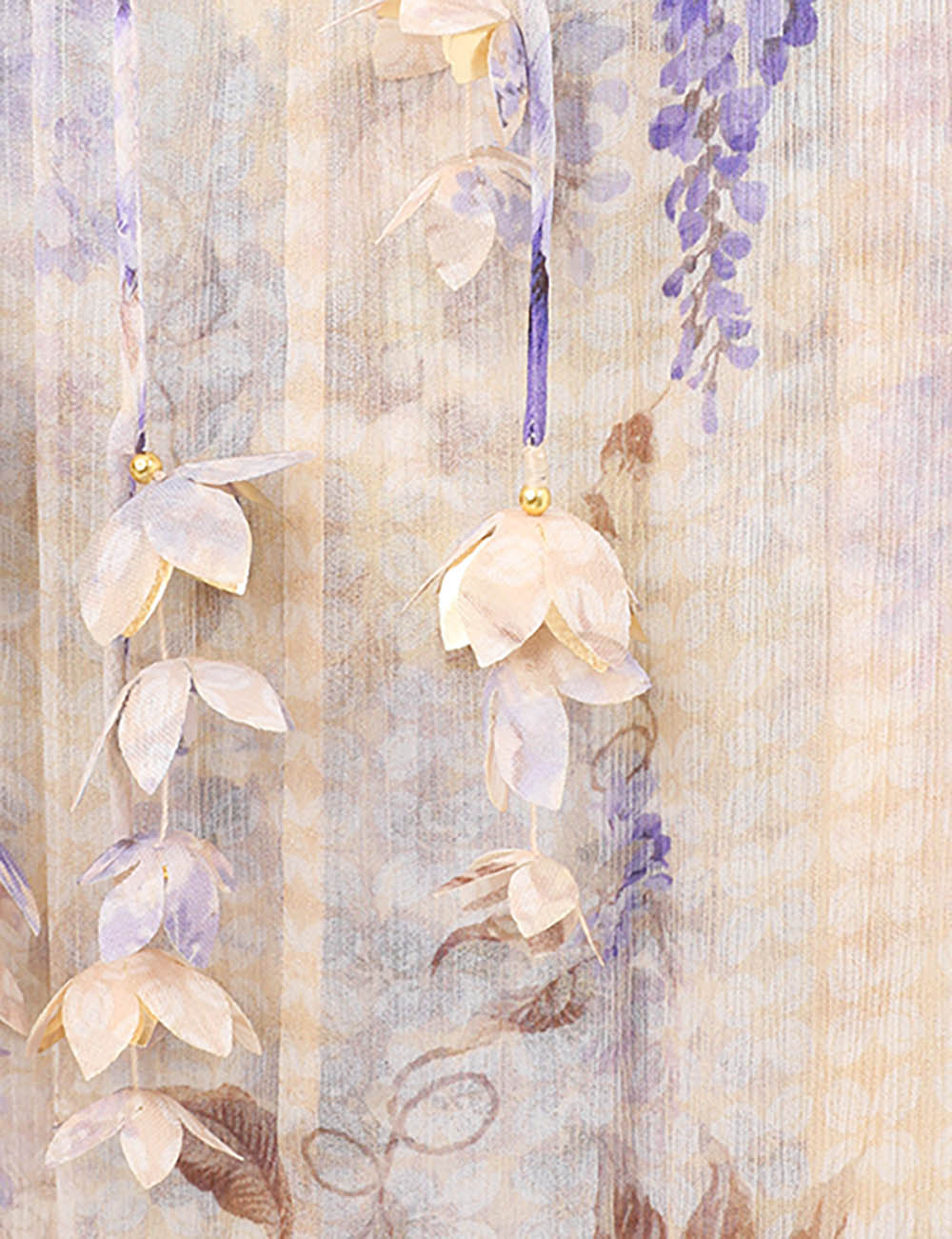 ZIMMER PLEATED V-NECK SLEEVELESS DRESS IN BEIGE MIX PURPLE