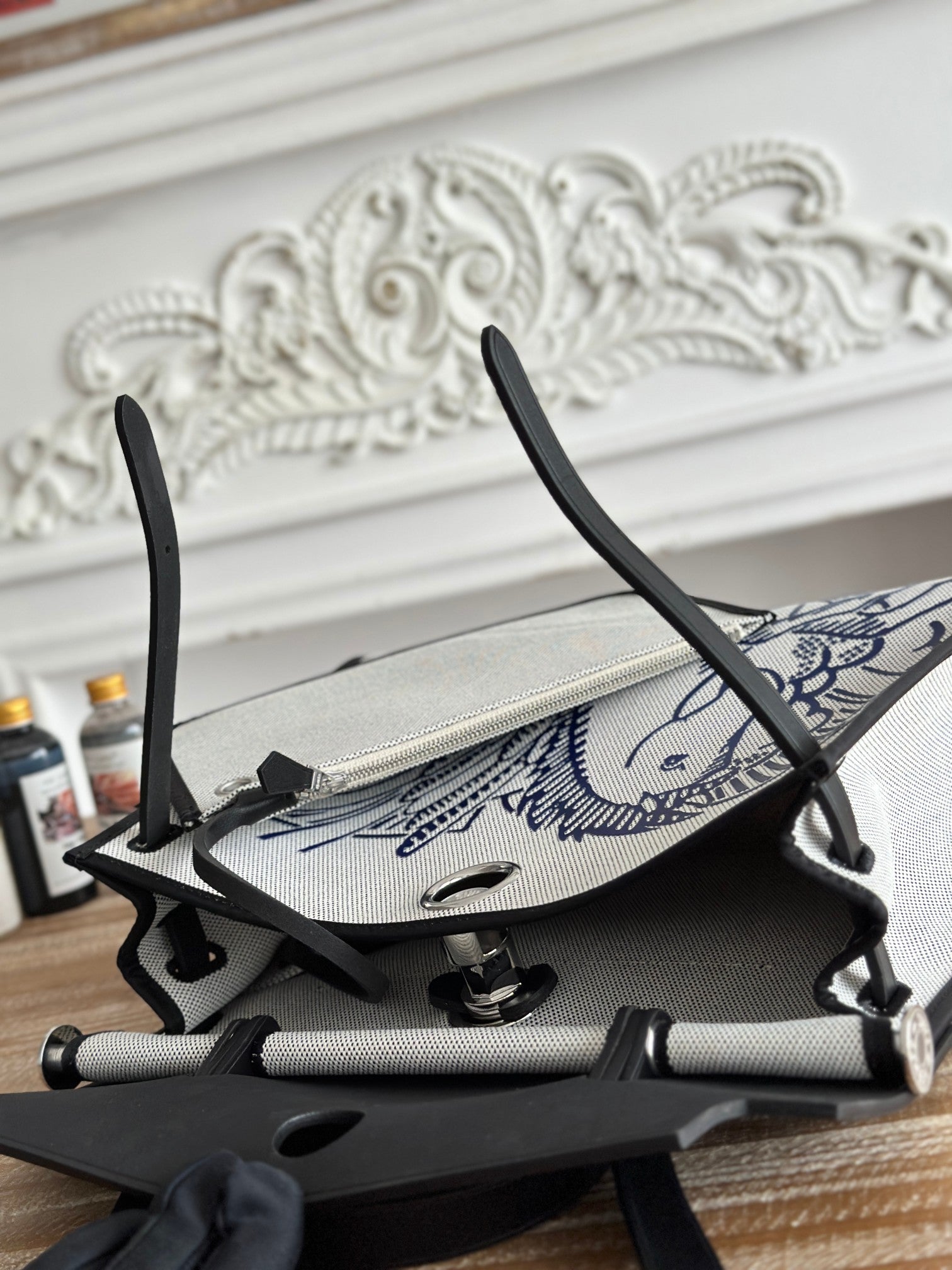 ZIP CABINE 31 BAG IN WHITE CANVAS AND BLACK CALFSKIN